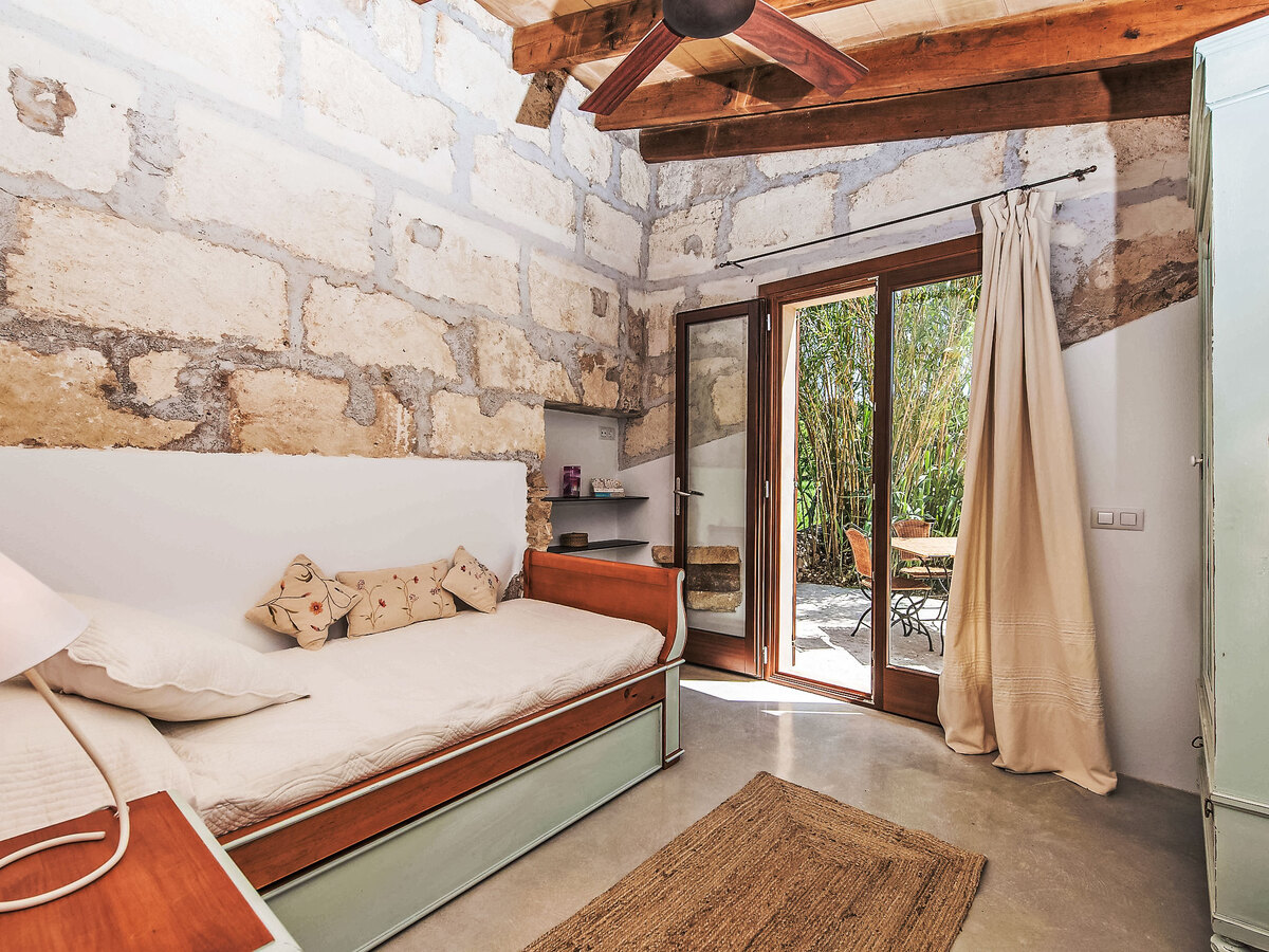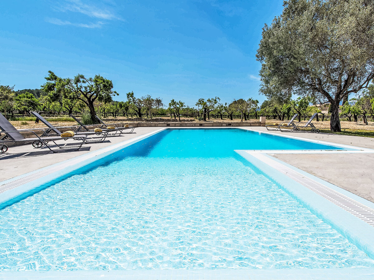« Cas Ciutada » est une villa en location pour huit personnes avec piscine à Selva, sur les Îles Baléares en Espagne. C’est une grande maison de campagne moderne, rustique, construite en 1850 et rénovée en 2015, environnée par les champs.