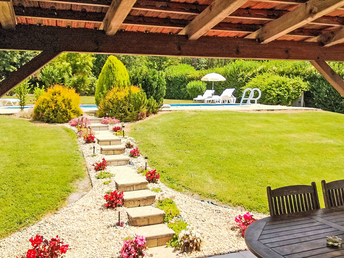 La terrasse couverte de 25 m2 avec des meubles, le barbecue et le jardin entretenu et avec pelouse de 500 m2 sont des installations de loisirs proposés sur place.
