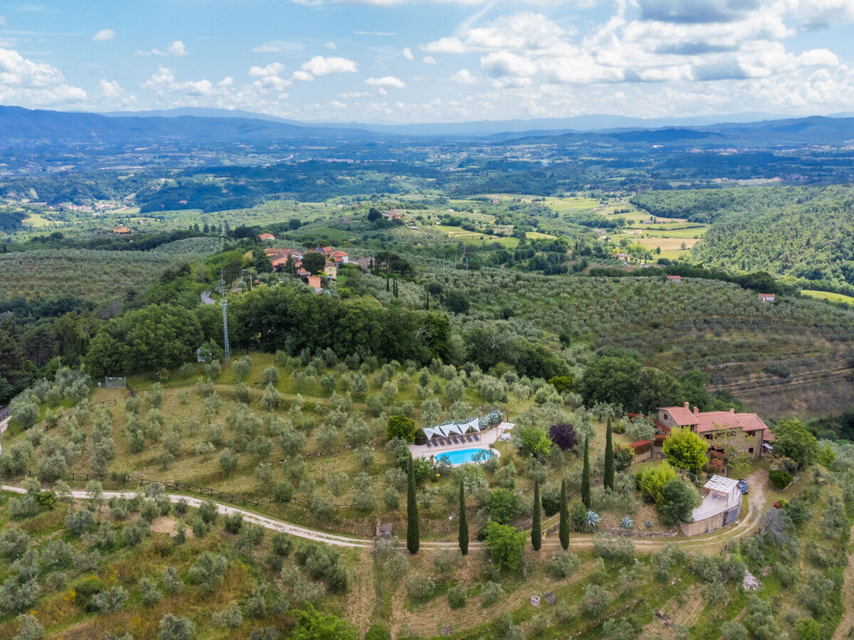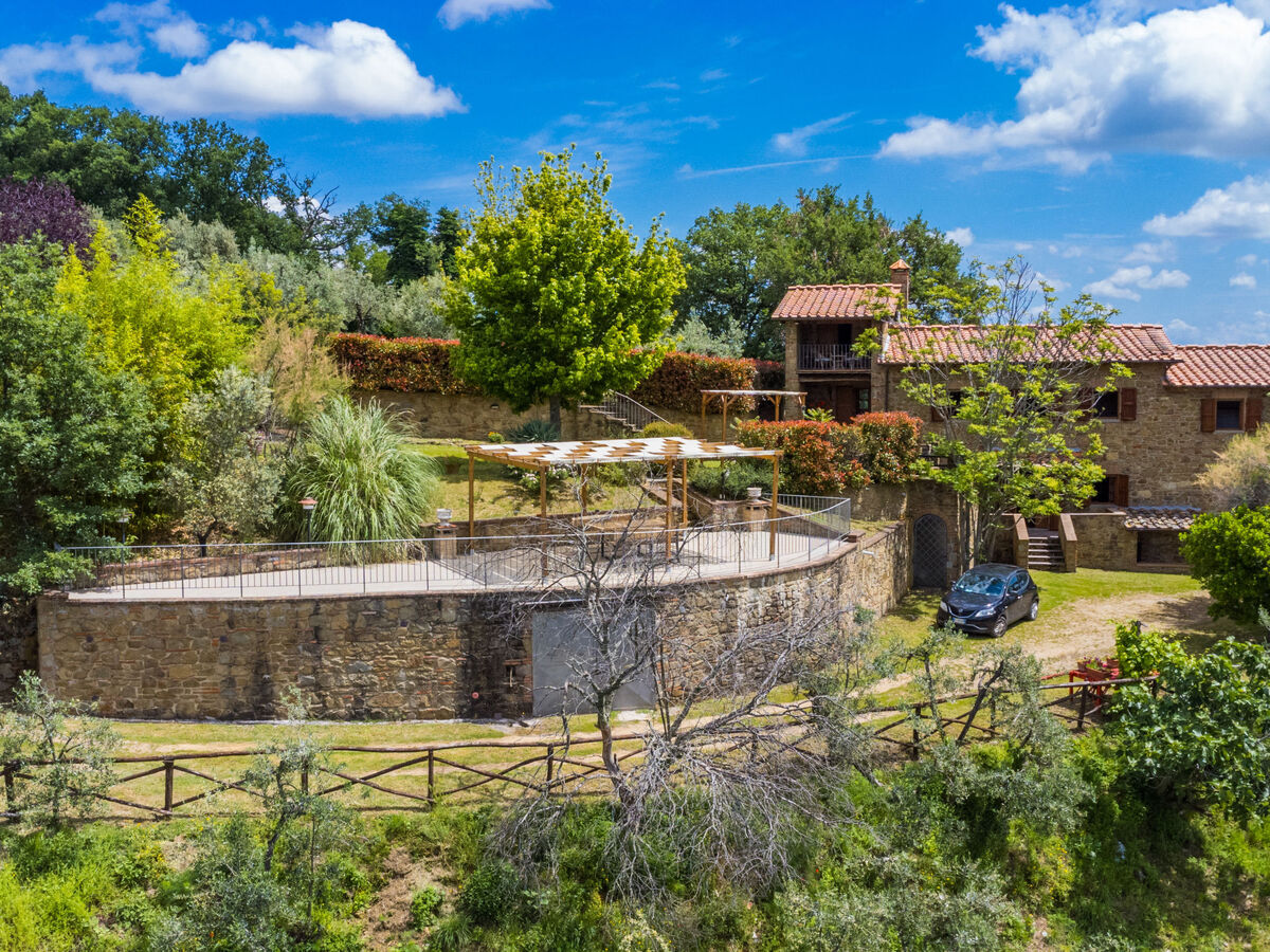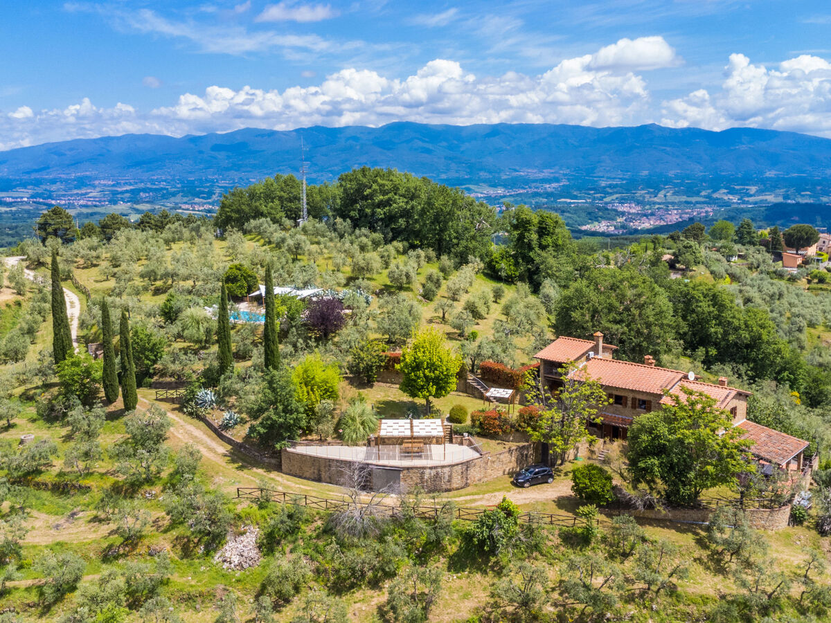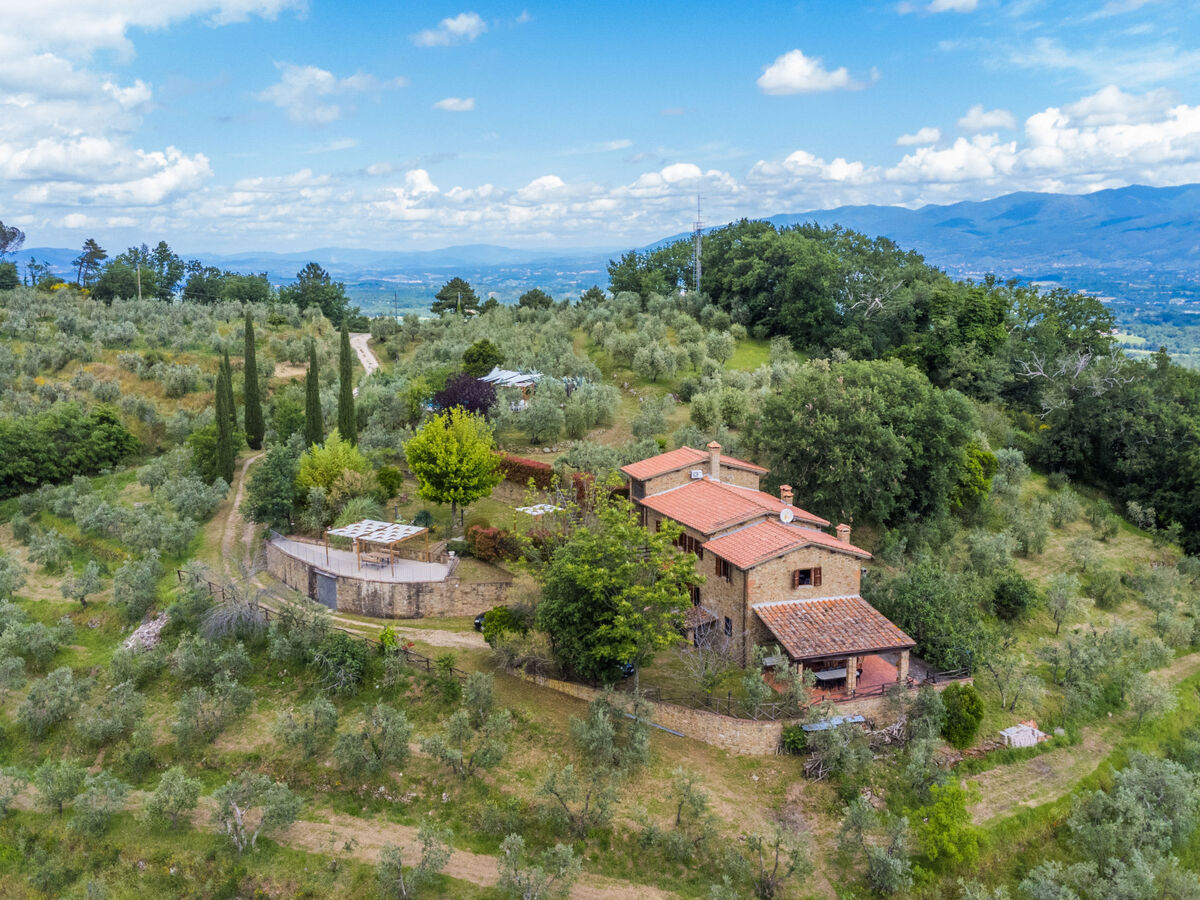 À 5 km du centre de Montevarchi, à 45 km du centre de Siena, à 50 km du centre de Firenze, situation tranquille, ensoleillée sur un versant, dans la verdure.