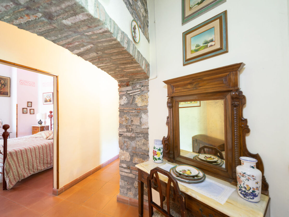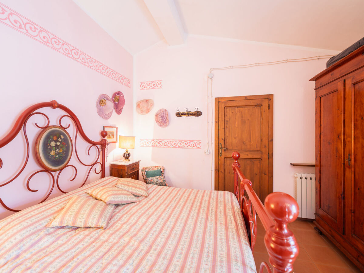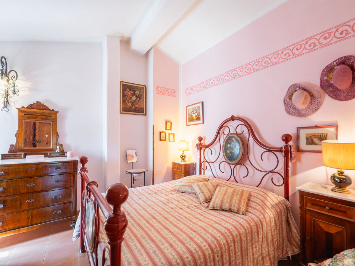 A l’étage du dessus, accessible par un escalier intérieur et un autre escalier extérieur, il y a 3 chambres. Parmi ces chambres, 2 sont doubles et la troisième est une petite chambre avec cheminée équipée d’un lit. Pour finir, il y a une salle de bains qui est équipée d’une baignoire/bidet/WC.