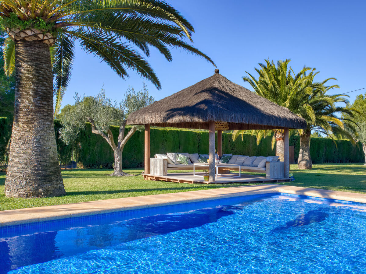 A usage privé: terrain 6'000 m2 (clôturé), beau jardin entretenu (clôturé) avec pelouse et plantes, piscine à l'abri des regards (7 x 14 m, profondeur 110 - 210 cm, disponibilité saisonnière: 01.Jan.