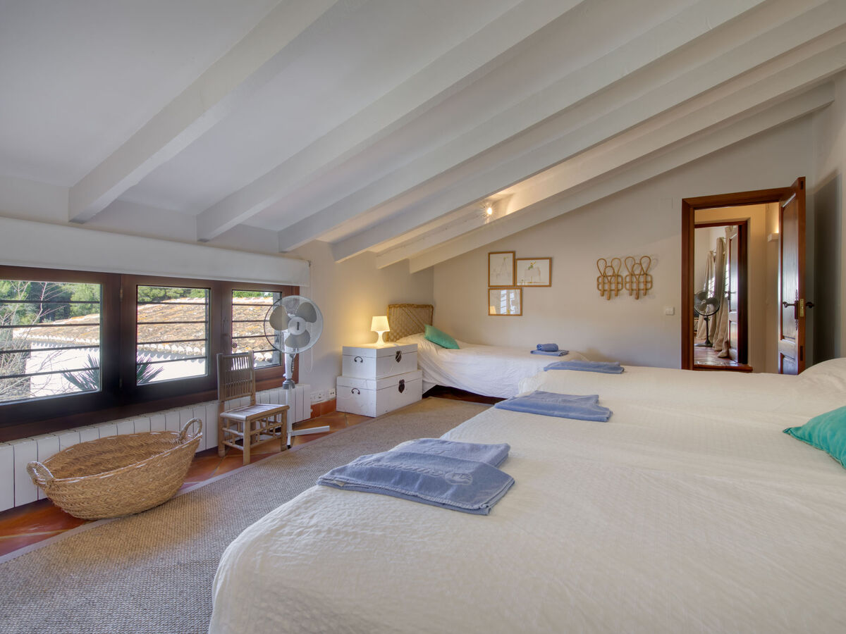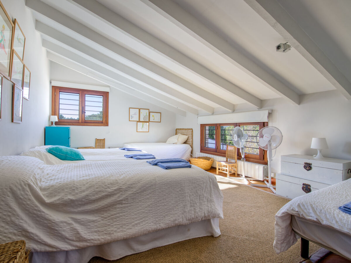 1 chambre avec 3 lits (90 cm, longueur 190 cm), bain/bidet/WC, WC séparés et ventilateur.