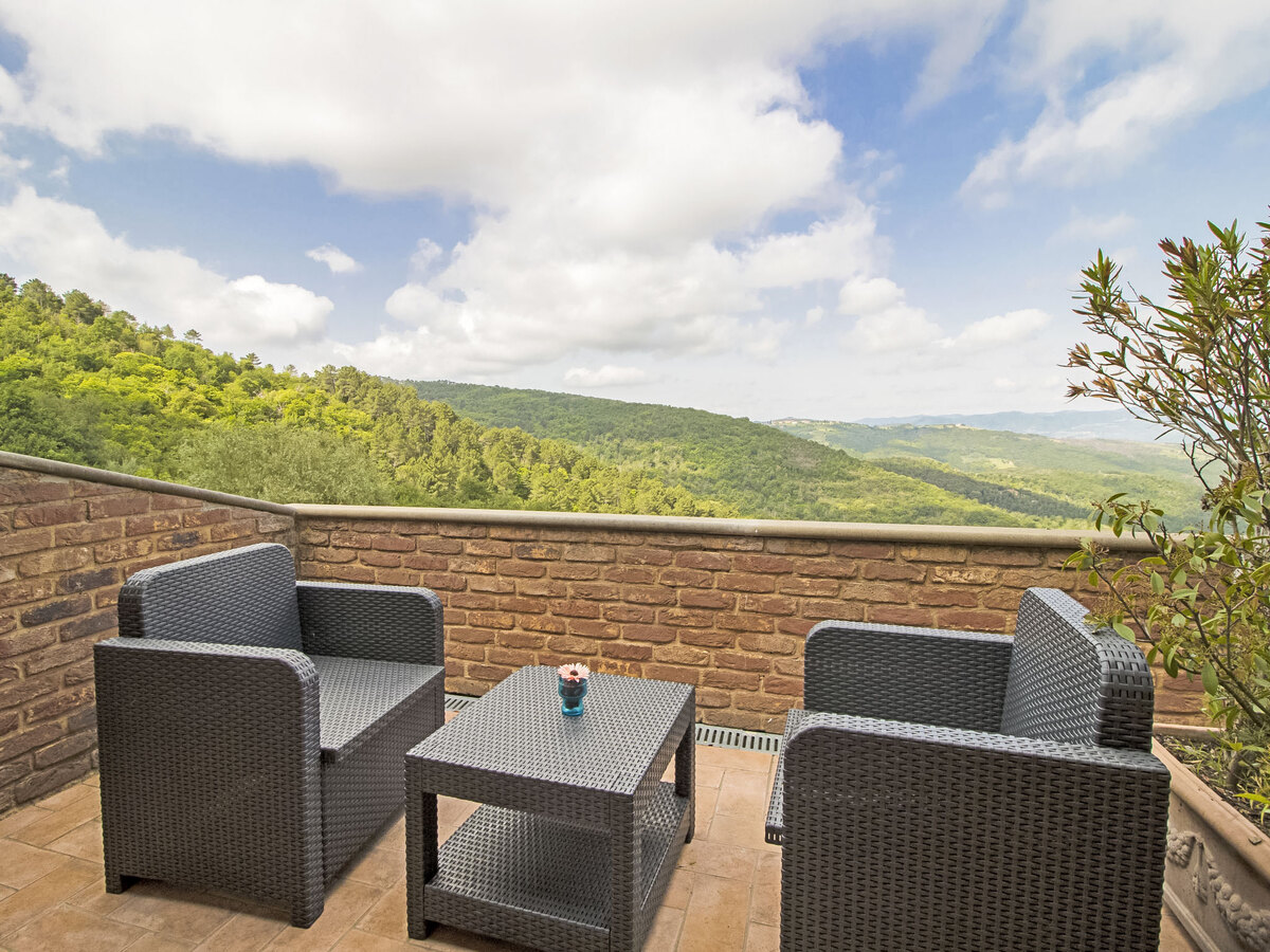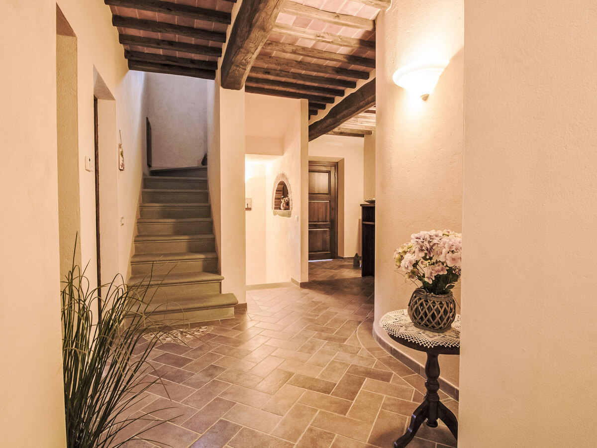 Situé dans un village toscan typique, au sommet d'une colline avec une vue imprenable sur Val Di Chiana maison de campagne "Il Borgo di Gebbia", 500 m au dessus du niveau de la mer, rénovée en 2014.