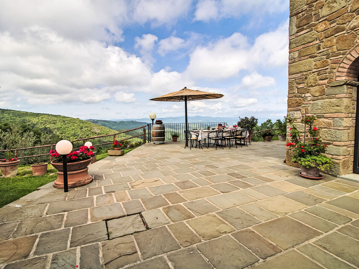 À 3.5 km du centre de Civitella in Val di Chiana, à 23 km du centre d'Arezzo, à 52 km du centre de Siena, sur une colline.