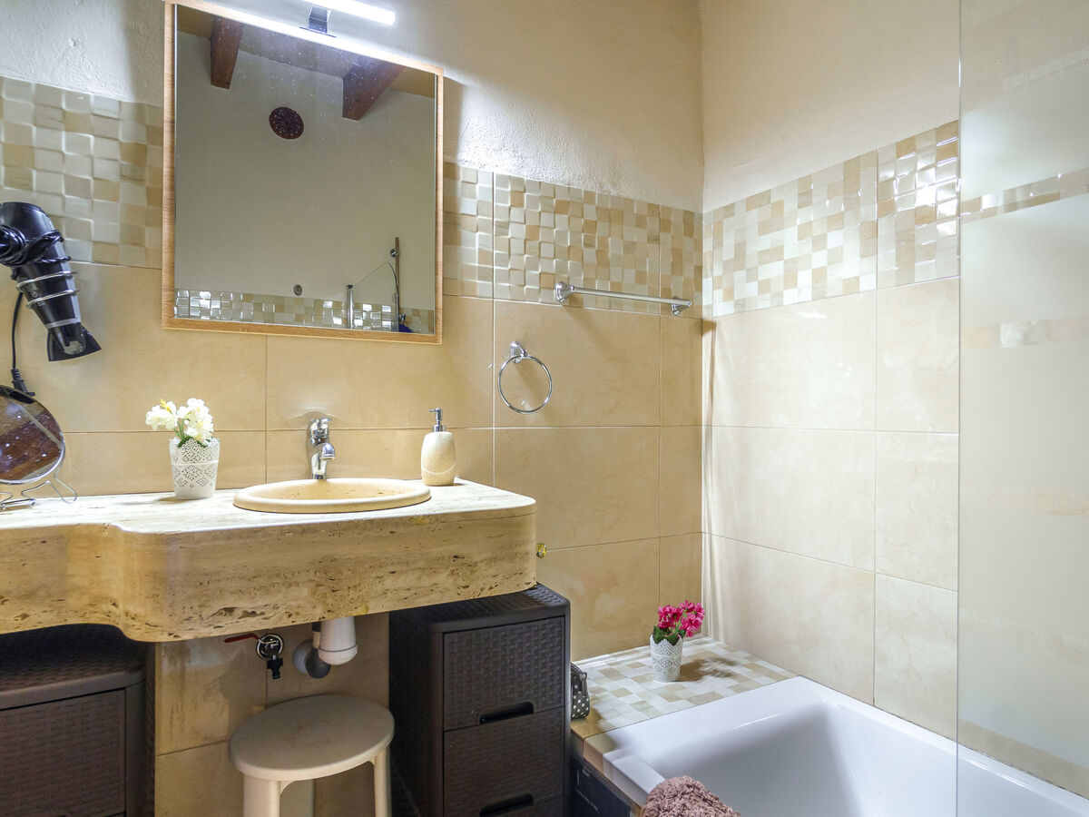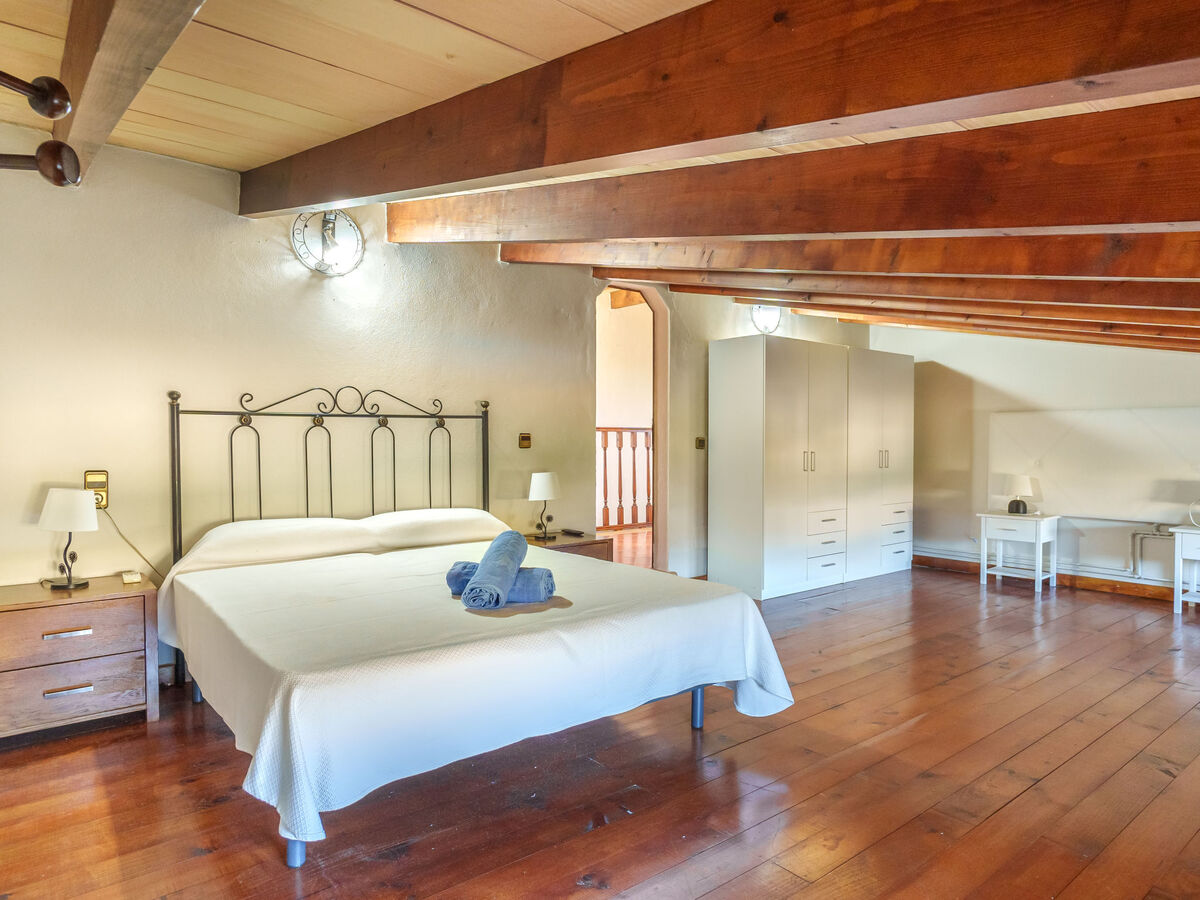À l'étage supérieur: 1 chambre, mansardée avec 1 grand-lit (150 cm, longueur 200 cm), air-conditionné.