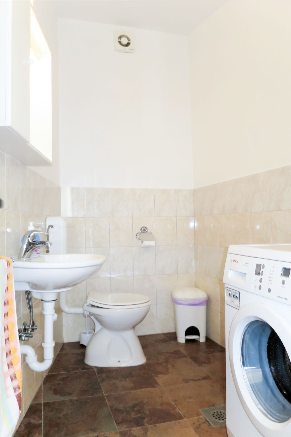 WC dans l'espace piscine, douche extérieure (balançoire).