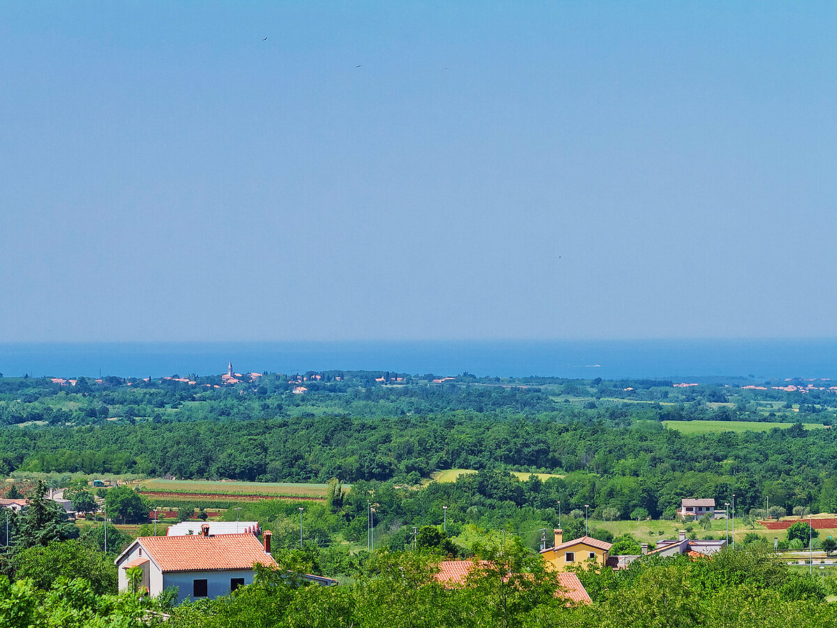 À 300 m du centre de Višnjan, situation tranquille, ensoleillée, surélevée, à 11 km de la mer.