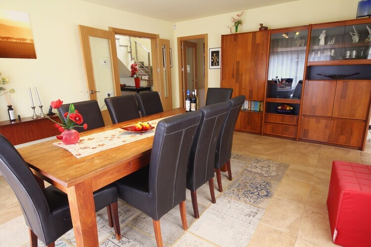 Rez-de-chaussée: (Salle de séjour(TV(chaînes de télévision néerlandaises, chaînes de télévision internationales), cheminée, coin salon, Lecteur DVD, installation stéréo, terrasse), salle à manger(table(8 personnes), terrasse), cuisine/salle à manger(table, foyer, hotte, cafetière/percolateur(filtre), cafetière/percolateur(cups), four, micro ondes, lave-vaisselle , combinaison réfrigérateur/congélateur, terrasse), chambre(lit double, climatisation, terrasse), chambre(lit double, climatisation), chambre(lit simple(100 x 200 cm), climatisation), chambre(lit simple(100 x 200 cm), climatisation), salle de bains(douche, lavabo, WC), salle de bains(douche, lavabo, WC), Alarme) Au 1er étage: (chambre(lit double, balcon, climatisation), salle de bains(baignoire-douche, douche, lavabo, WC)) réserve(combinaison réfrigérateur/congélateur, lave-linge ), cuisine d'été, baignoire où douche, douche, chauffage(chauffage par le sol), chauffage, climatisation, terrasse, jardin(clôturé), mobilier de jardin, transats, barbecue(gaz), parking, trampoline, chaises longues, piscine(privé, 9 x 4 m., ouvert de 1/2 Avr jusqu'à (inclus) 1/2 Oct), bac à sable, équipements de jeux, toboggan, tennis de table/ping-pong, lit d'enfant, chaise haute, table à repasser, jeux de société