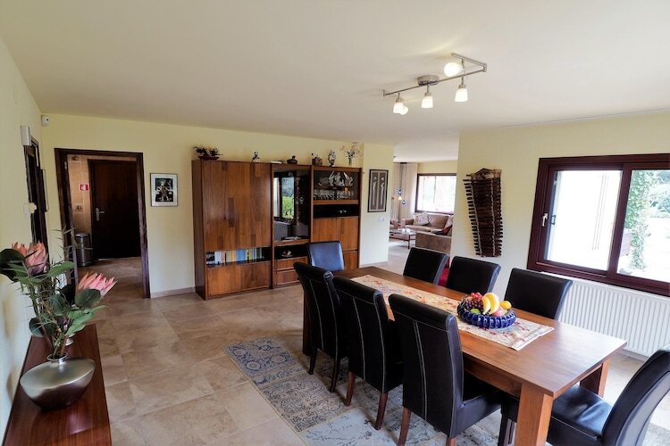 Quelle jolie maison ! En montant l'allée vous ressentez immédiatement la sensation d'espace, de liberté et de repos absolu. Cette maison de rêve se trouve en plein milieu de magnifiques bois sur les collines des Gavarres et à peu de distance de la belle côte sauvage avec de belles plages. Vous disposez de deux piscines : une privée avec douche extérieure, des chaises longues, une chouette maison de jeux, une hutte d'escalade avec toboggan, des balançoires, un bac à sable, une table de ping-pong (n'oubliez pas vos palettes et balles de ping-pong)et un grand plateau d'échecs extérieur. L'autre piscine (de 25 m de long, moyennant paiement), se trouve à 500 mètres. Elle dispose d'une prairie, de deux terrains de tennis (contre paiement) et d'un mignon restaurant (les trois uniquement ouverts en haute saison). Calonge est un petit village tout mignon, historique avec un château médiéval. Vous trouverez une belle plage près du lieu balnéaire de Sant Antoni de Calonge (11 km) avec de magnifiques sentiers de promenade le long de la côte ou vers la ville connue de Platja d'Aro (14 km). Tout au long de la côte se trouvent de petits villages qui valent la peine, tels Llafranc et Calella de Palafrugell, deux petits villages de pêcheurs avec de belles petites plages, et Sant Feliu de Guixols (12 km) avec sa magnifique promenade le long de la plage.