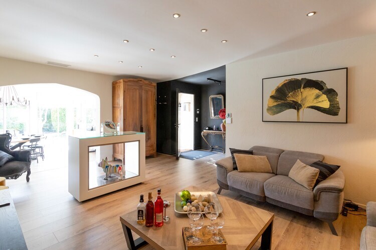 Rez-de-chaussée: (Salle de séjour(Lecteur DVD, Lecteur CD), cuisine(bouilloire, grille-pain, plaque de cuisson(4 foyers, gaz), hotte, cafetière/percolateur(pads), four, micro ondes, lave-vaisselle , combinaison réfrigérateur/congélateur), cuisine(plaque de cuisson(4 foyers, induction), lave-vaisselle , réfrigérateur, congélateur), chambre(lit double(160 x 200 cm)), chambre(lit double(160 x 200 cm)), chambre(lit double(160 x 200 cm)), salle de bains(douche, lavabo, WC), salle de bains(baignoire, douche, lavabo, WC), buanderie (WC, lave-linge ), portes-fenêtres, chauffage, climatisation) cuisine d'été, abri pour voiture, terrasse, terrasse(couverte), jardin(clôturé, 600 m2), mobilier de jardin, transats, barbecue(gaz, charbon de bois), piscine(privé, alarme de piscine, 10 x 5 m.), lit d'enfant, chaise haute