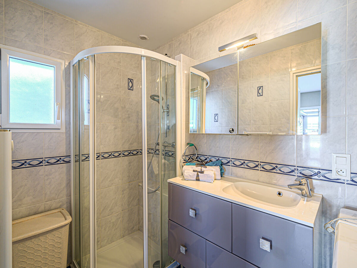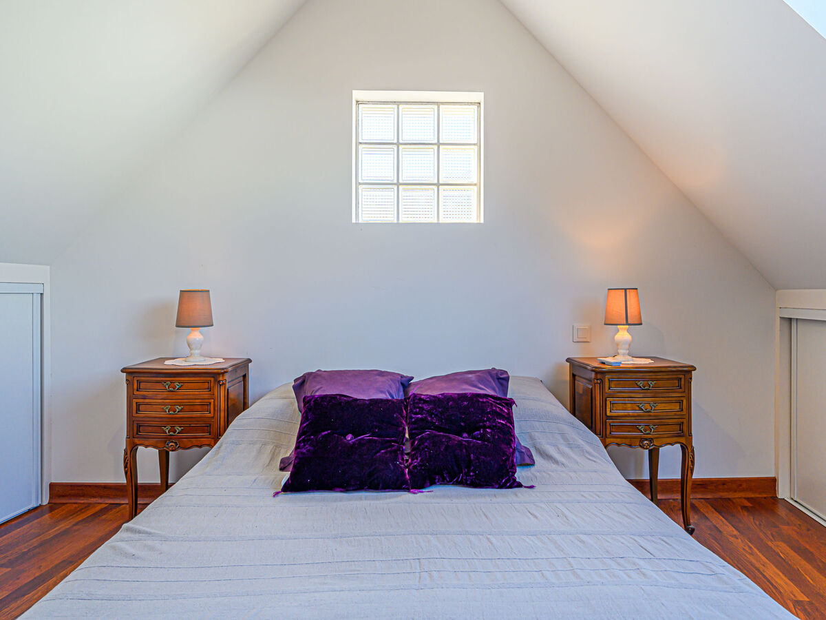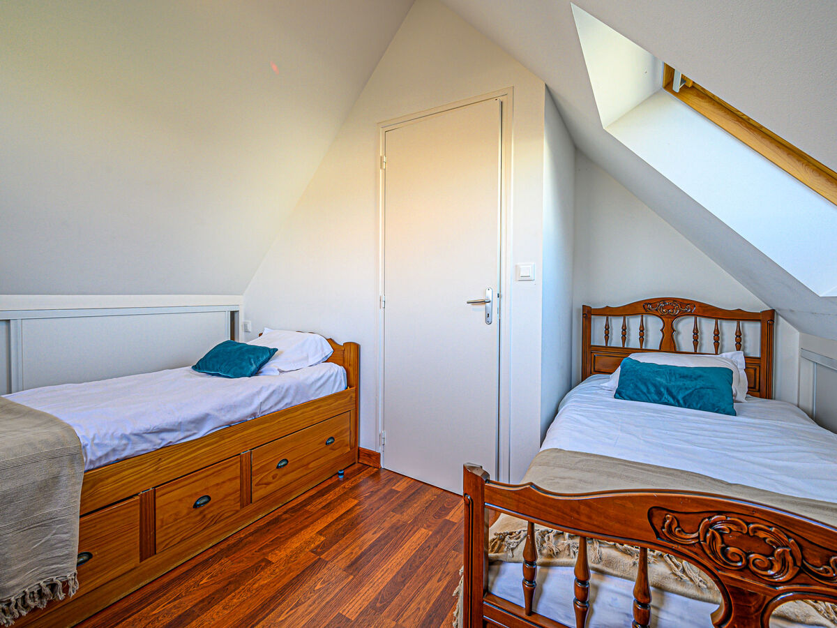 A l'étage supérieur, la maison comporte une chambre avec deux lits (90 cm) et une autre avec un divan-lit double (140 cm, longueur 200 cm), ainsi qu'une salle d'eau, et des toilettes séparées.