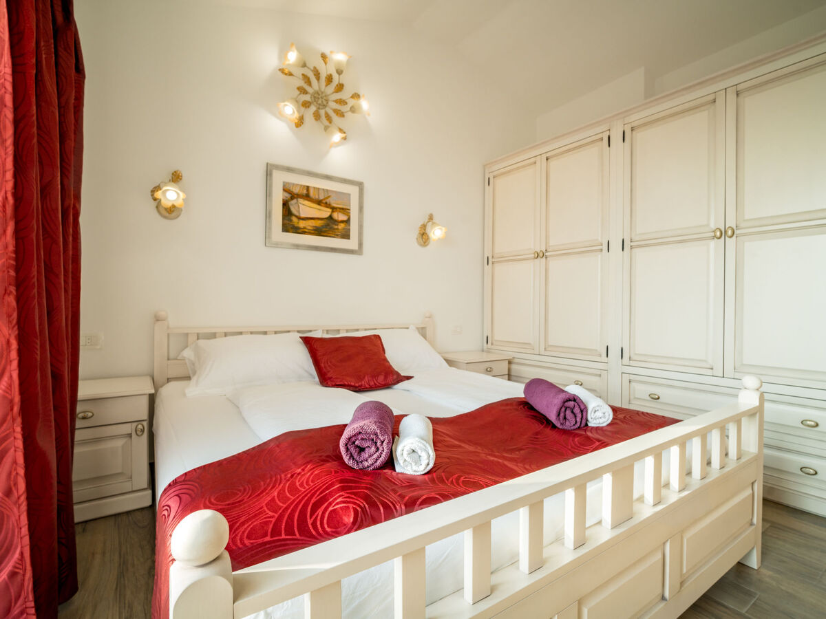 À l'étage supérieur: 1 chambre avec 1 grand-lit (180 cm, longueur 200 cm), TV (satellite) (écran plat), air-conditionné.