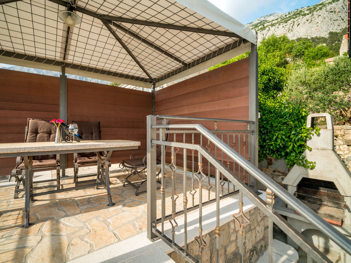 Dans le haut de la station de Makarska, dans le hameau de Puharići, à 1.5 km du centre de Makarska, situation tranquille, ensoleillée sur un versant, à 1.5 km de la mer, à 1.5 km de la plage.