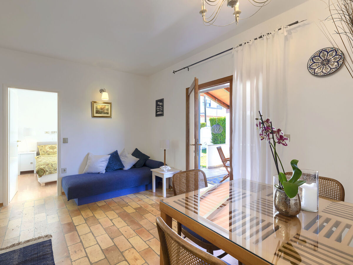 Séjour/salle à manger avec TV (satellite) (écran plat), air-conditionné.