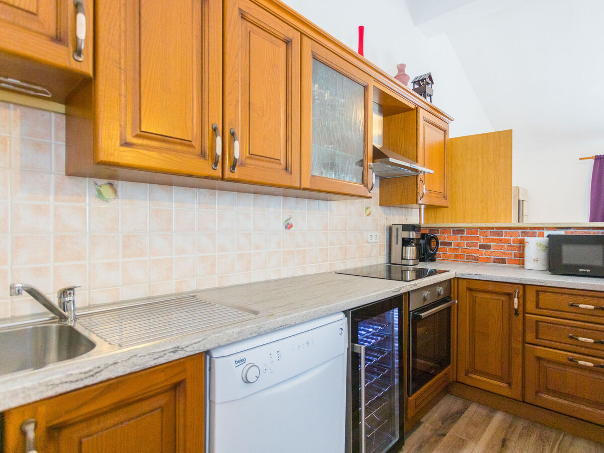 Cuisine ouverte (4 plaques de cuisson, four, lave-vaisselle, micro-ondes, cafetière électrique).