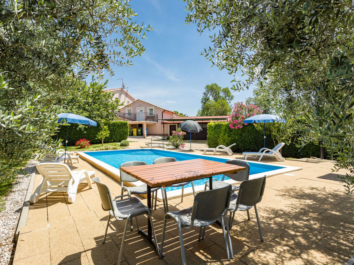 A usage privé: terrain 600 m2, arbres, piscine rectangulaire (45 m2, profondeur 135 cm, disponibilité saisonnière: 01.Mai.