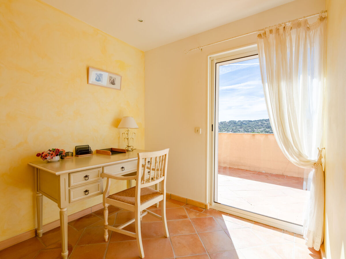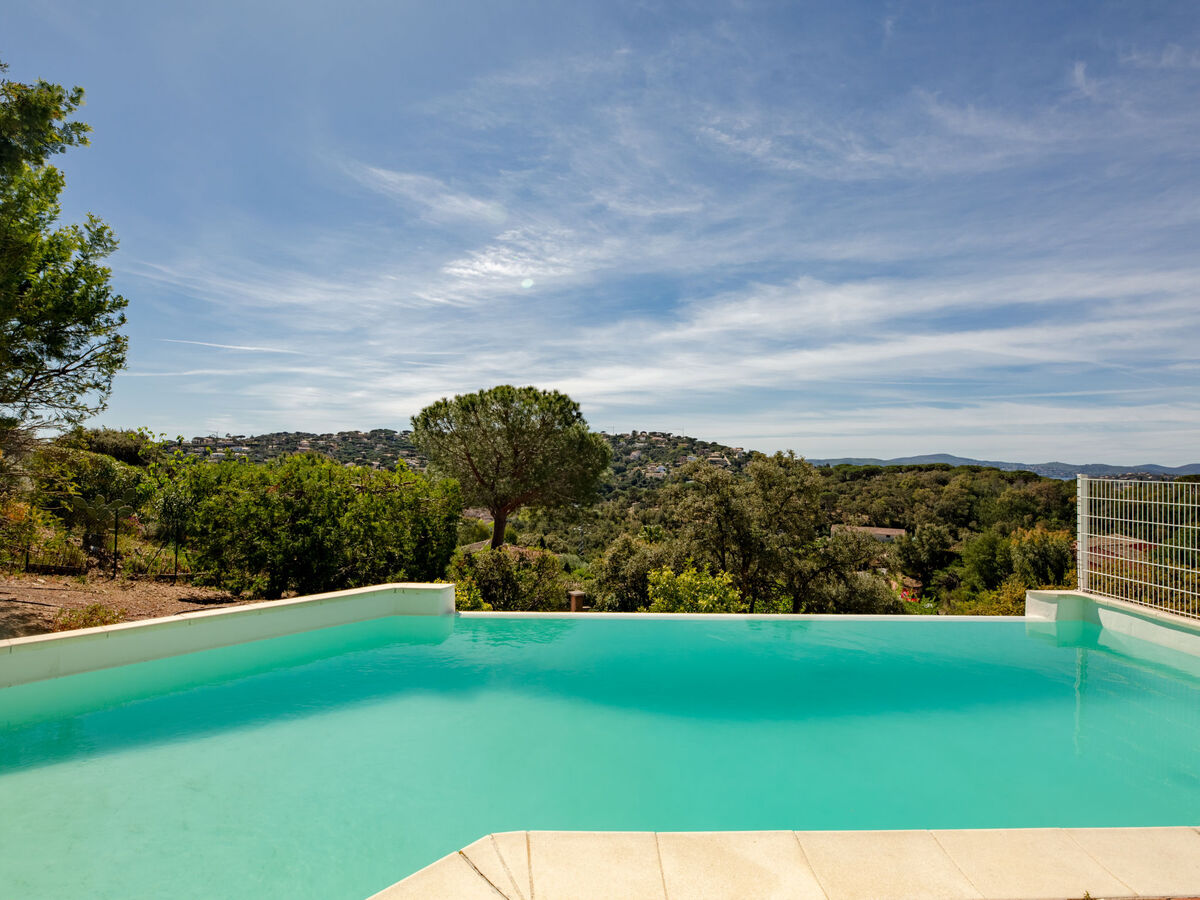 À 3.5 km du centre de Sainte Maxime, à 17 km du centre de Saint Tropez, à 70 km du centre de Cannes, sur un versant, quartier résidentiel, à 3 km de la mer.