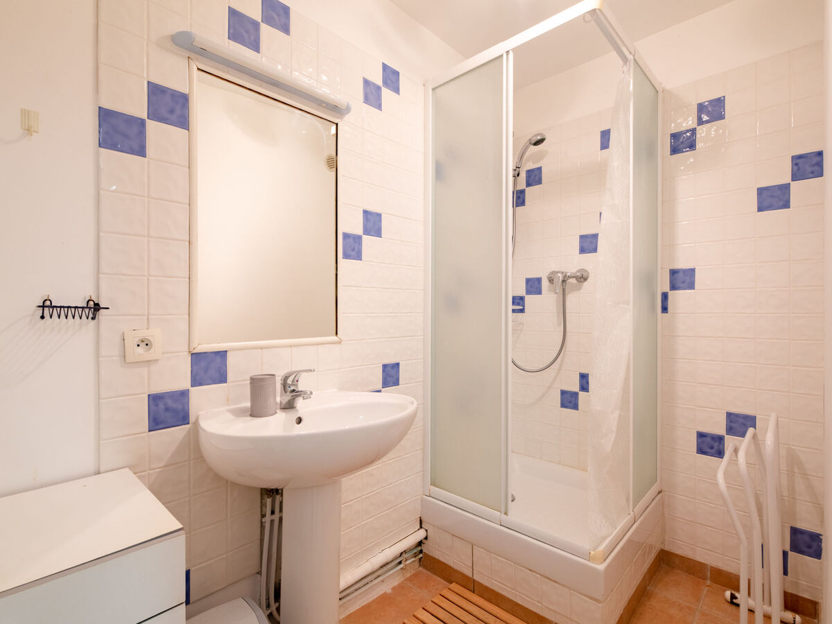 À l'étage inférieur: 1 chambre avec 2 x 2 lits superposés, douche.