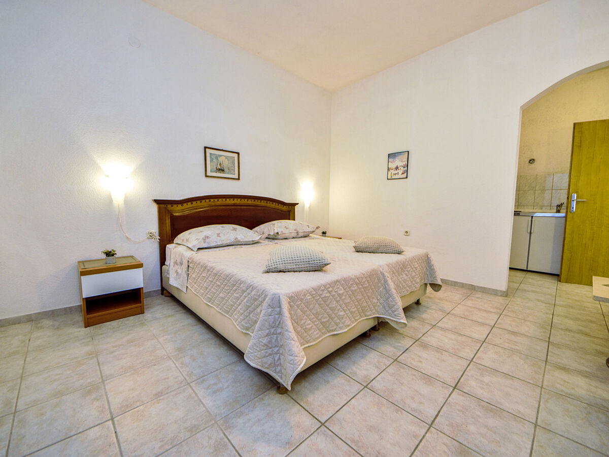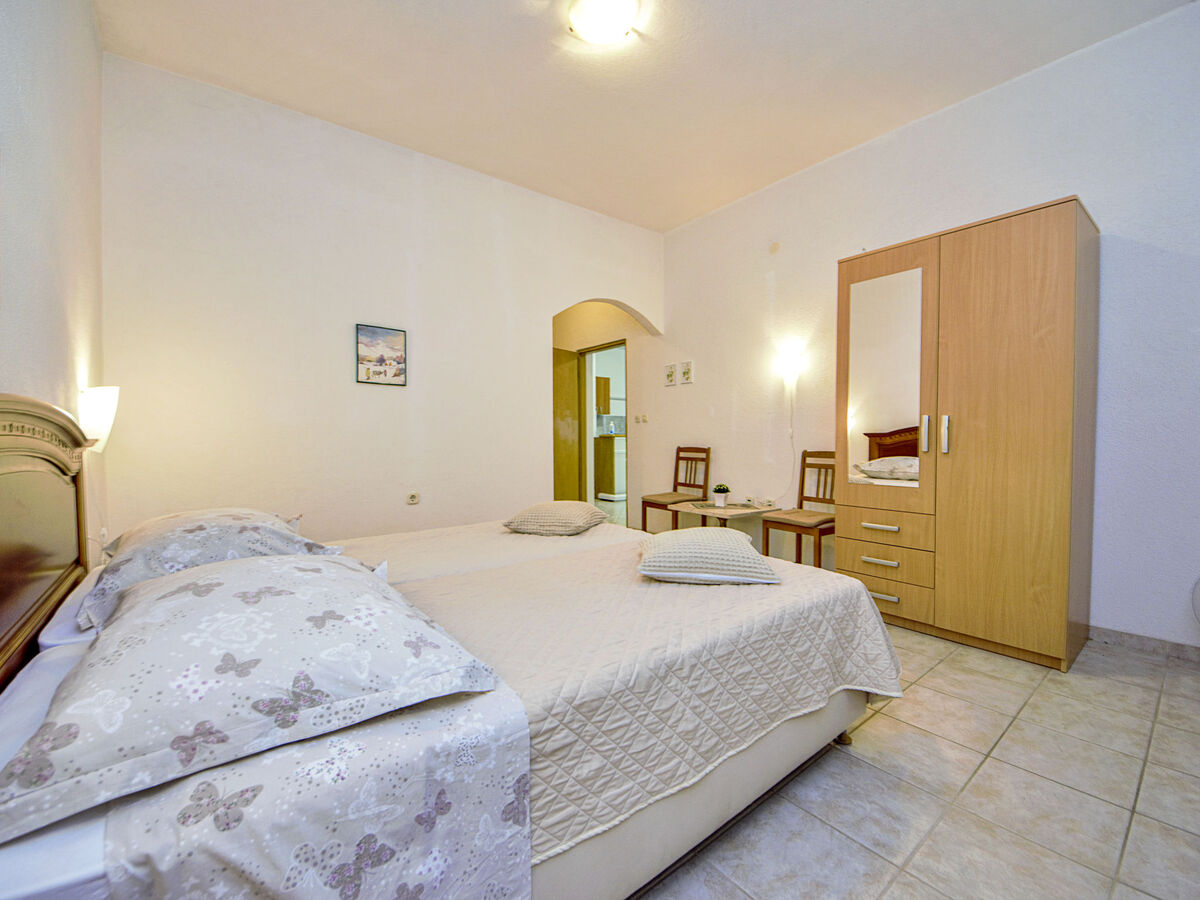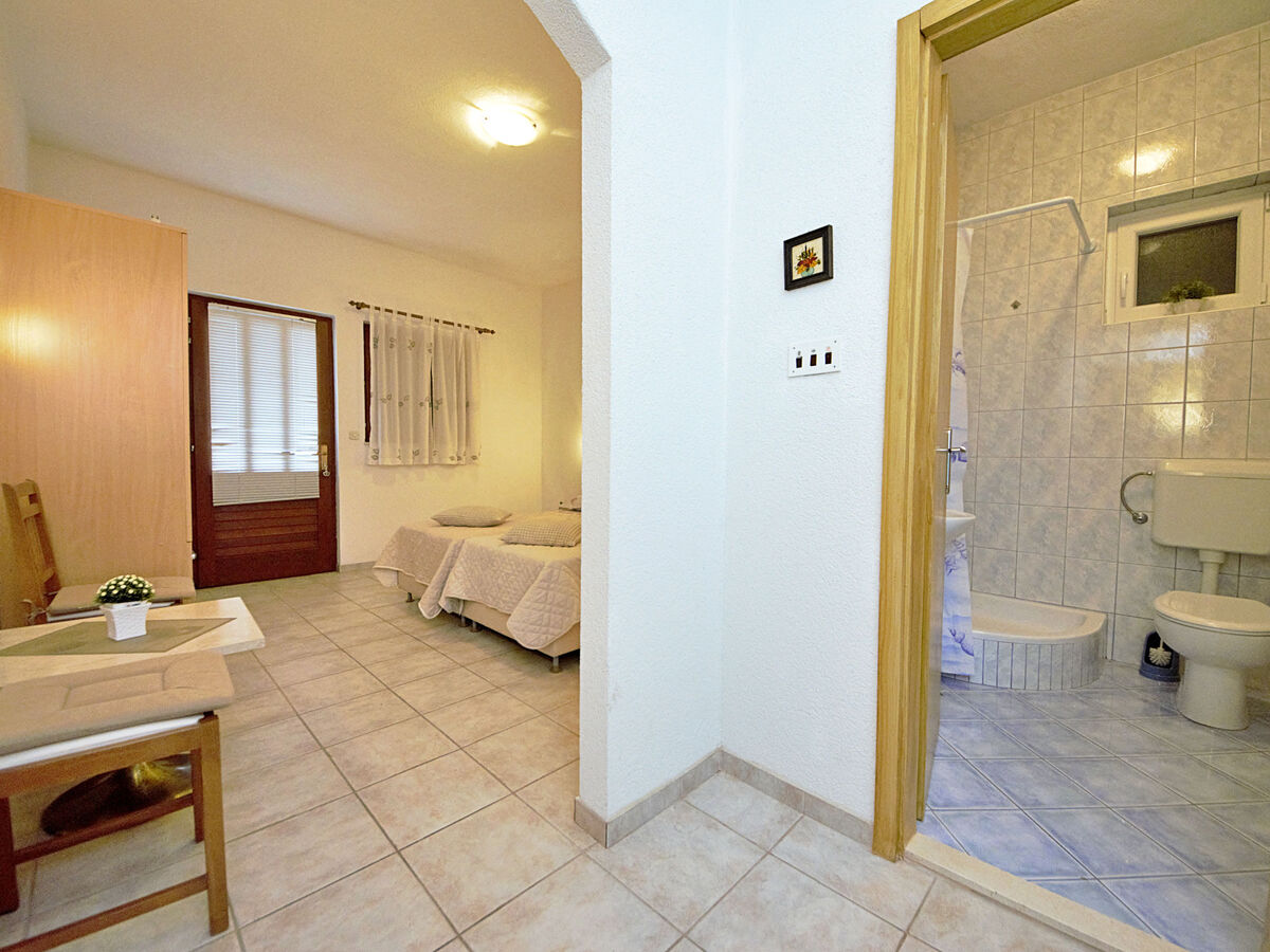 1 chambre avec 2 lits (90 cm, longueur 190 cm), coin-cuisine et douche/WC.