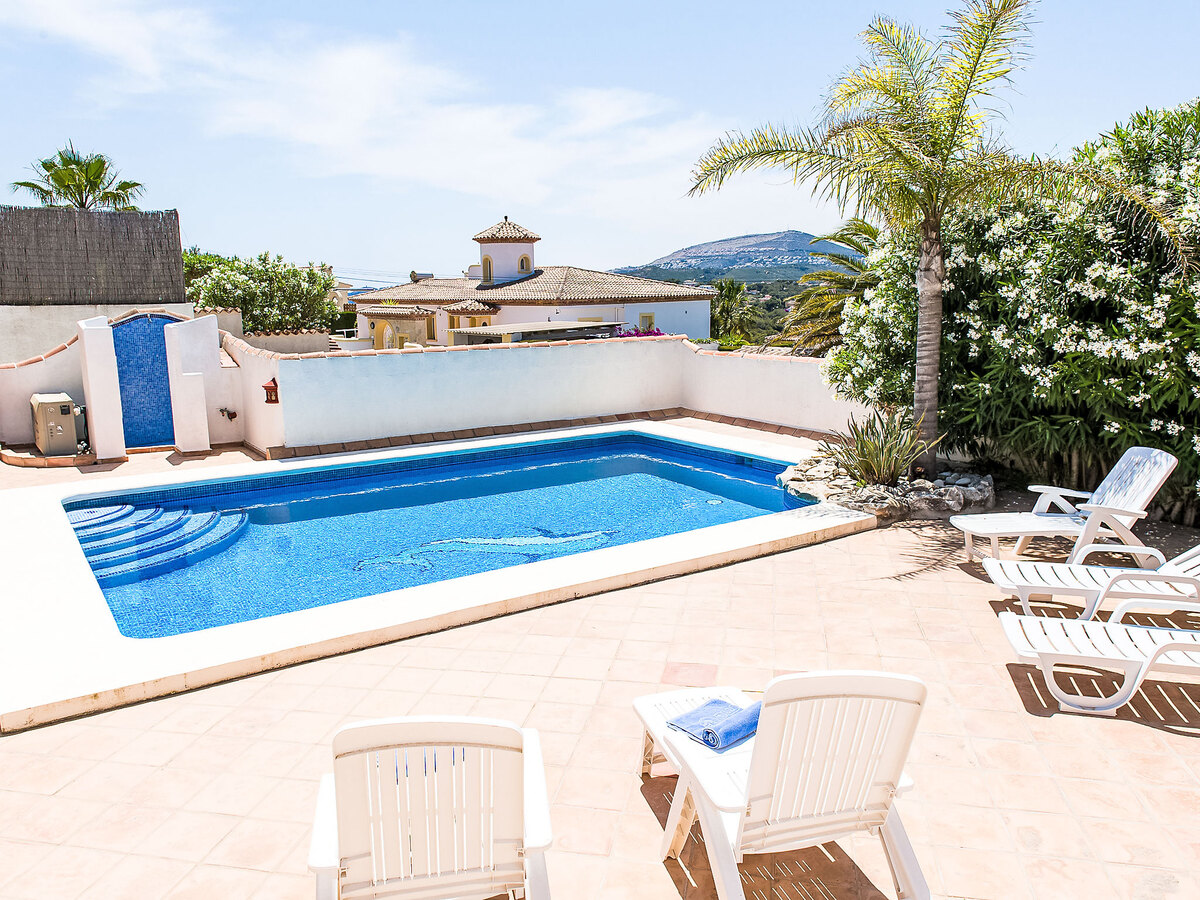 A usage privé: jardin sur plusieurs niveaux 850 m2 (clôturé) avec plantes, piscine (5 x 8 m, disponibilité saisonnière: 01.Jan.