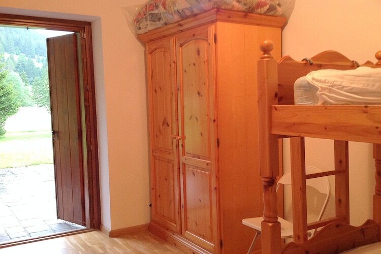Rez-de-chaussée: (cuisine ouverte(four), salle à manger-salon(canapé-lit double), chambre(lit double), chambre(Lit superposé), salle de bains(douche, lavabo, WC, lave-linge ), chauffage(central)) garde-skis(accès par l'extérieur), garage, terrasse(privé), jardin(partagé avec d'autres clients), parking