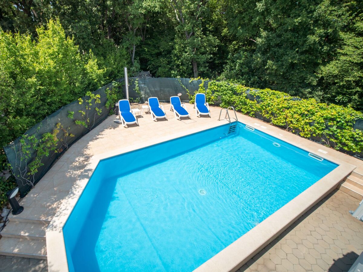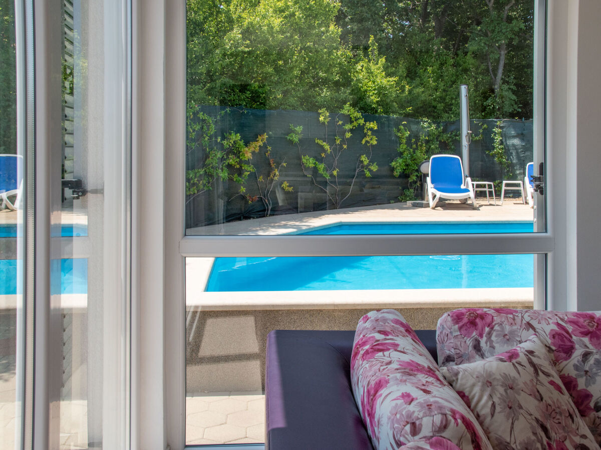 A usage privé: terrain 724 m2 (clôturé), piscine chauffée (32 m2, profondeur 150 cm, disponibilité saisonnière: 01.Mai.