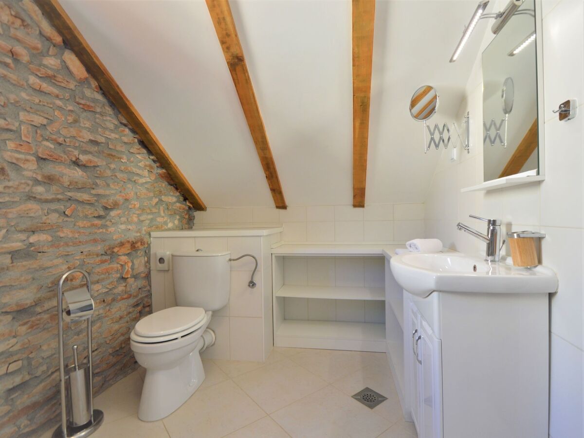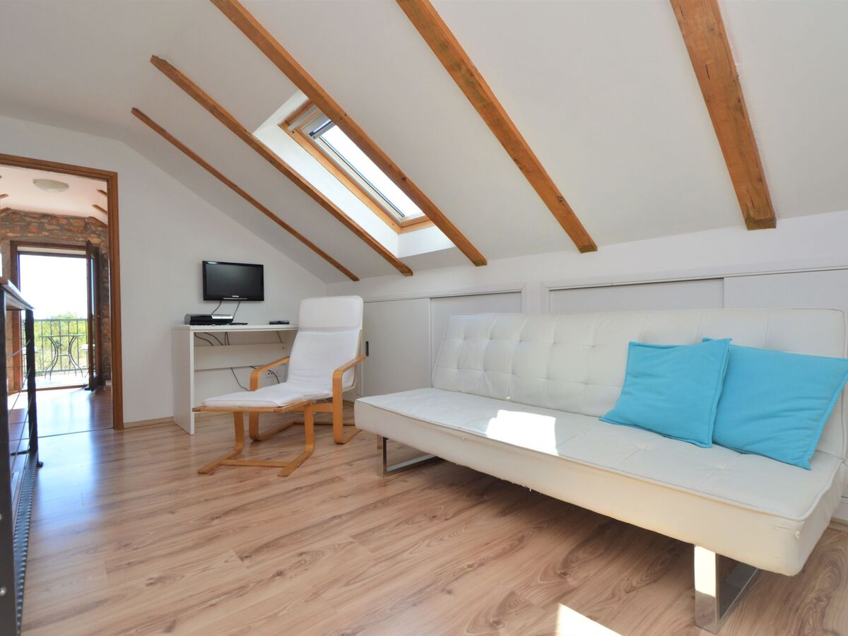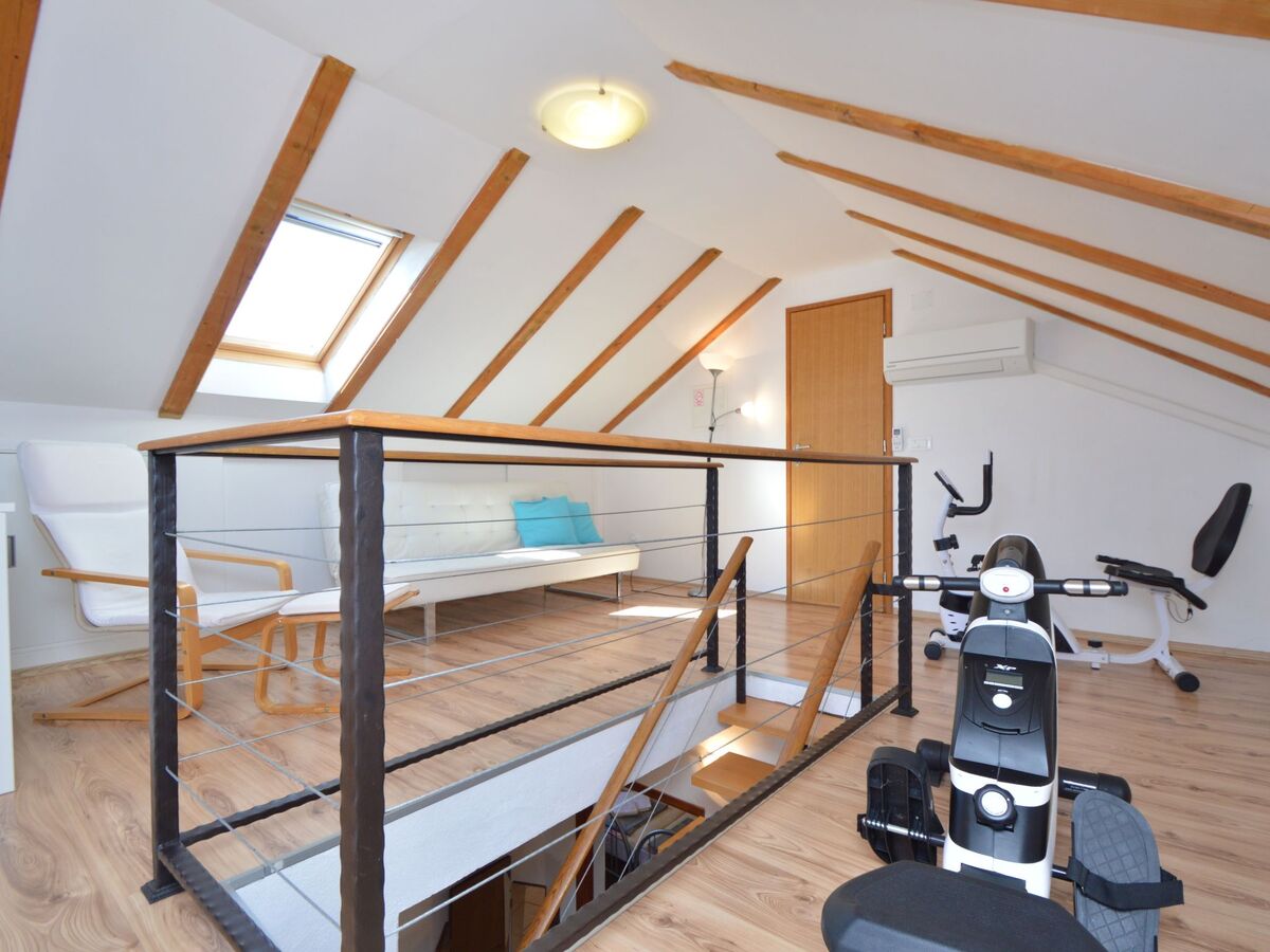 À l'étage supérieur: galerie ouverte, mansardée hauteur plafond 110 - 230 cm avec 1 divan-lit (110 cm, longueur 190 cm), TV (satellite) (écran plat), air-conditionné.