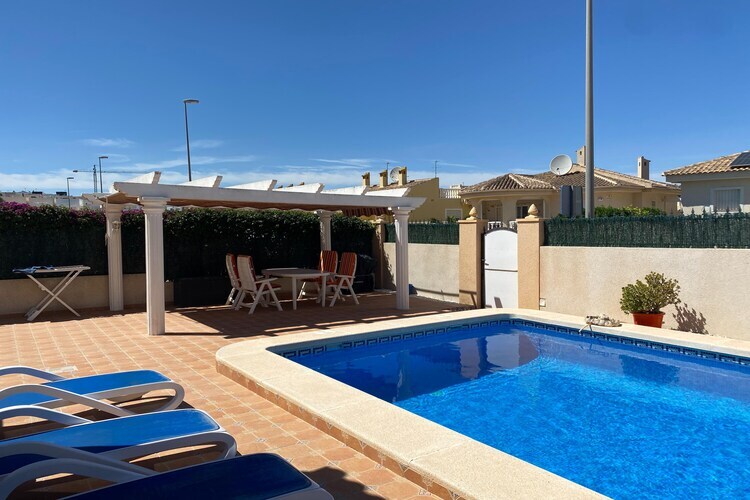 Rez-de-chaussée: (cuisine(plaque de cuisson(4 foyers, gaz), cafetière/percolateur, four, four/micro-onde combinés, lave-vaisselle , réfrigérateur, congélateur, sèche-linge), salle à manger-salon(TV(chaînes de télévision néerlandaises), climatisation), chambre(2x lit simple, climatisation), chambre(2x lit simple, climatisation), salle de bains(douche, lavabo, WC), WC, abri pour voiture) terrasse, jardin, mobilier de jardin, barbecue, piscine(privé, 8 x 4 m.)