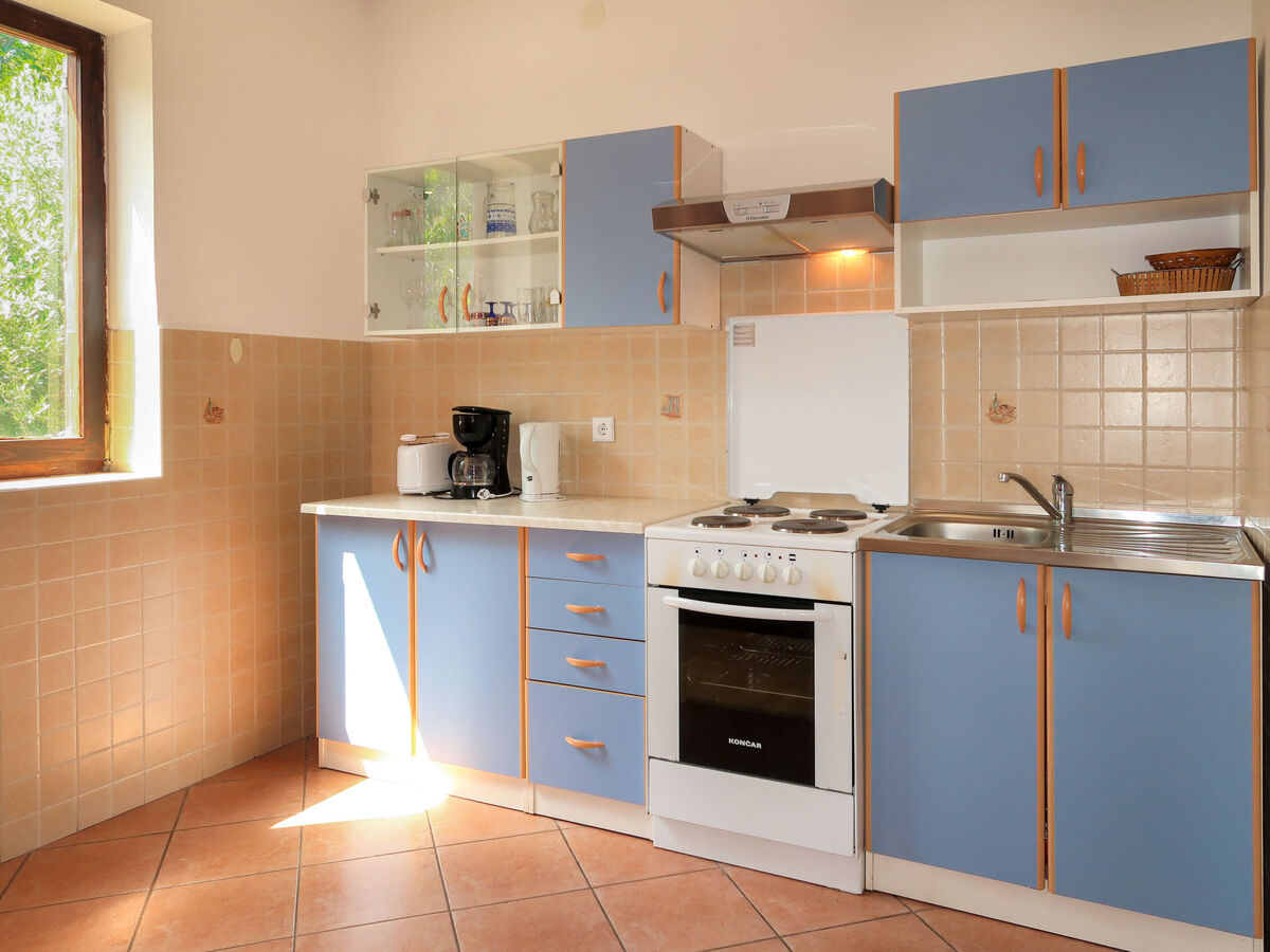 Cuisine (4 plaques de cuisson, four, grille-pain, bouilloire électrique, congélateur, cafetière électrique).