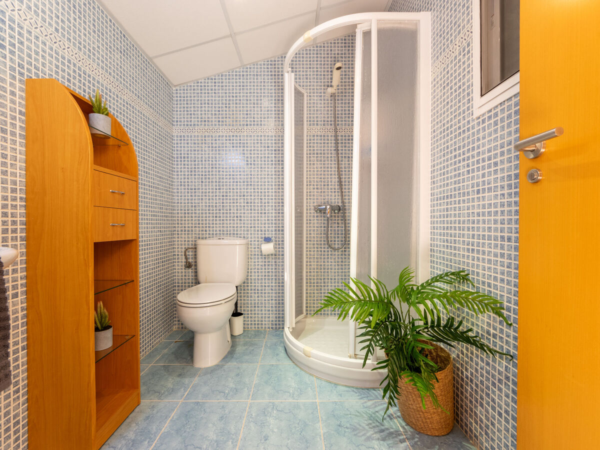1 chambre double avec 2 lits (90 cm, longueur 190 cm), douche/WC.