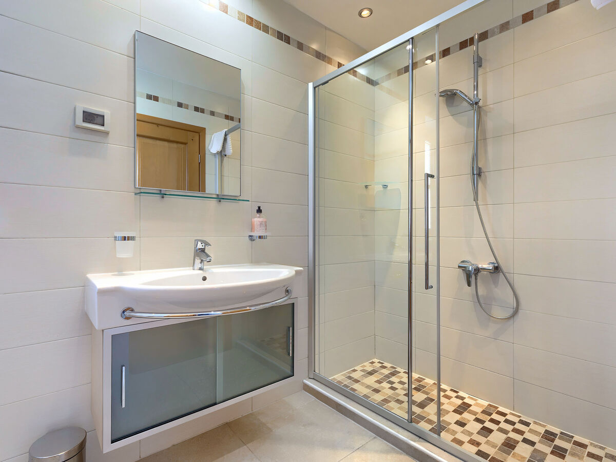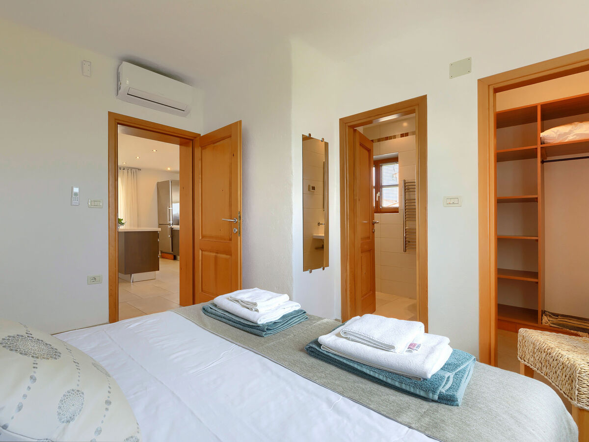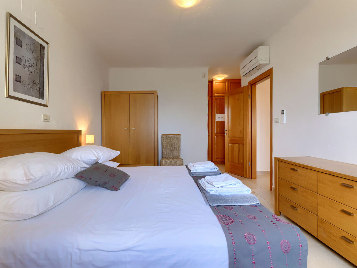 1 chambre avec 1 grand-lit (160 cm, longueur 200 cm), douche/bidet/WC et air-conditionné.