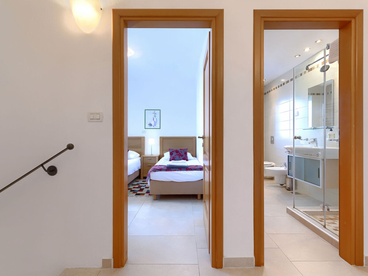 1 chambre avec 2 lits (80 cm, longueur 200 cm), douche/bidet/WC et air-conditionné.