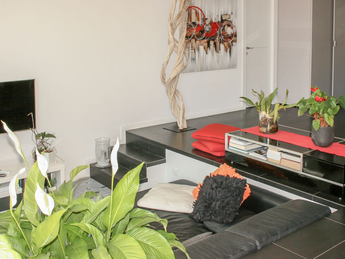 Clair, aménagement confortable et moderne: séjour/salle à manger avec baie vitrée avec TV et écran plat.