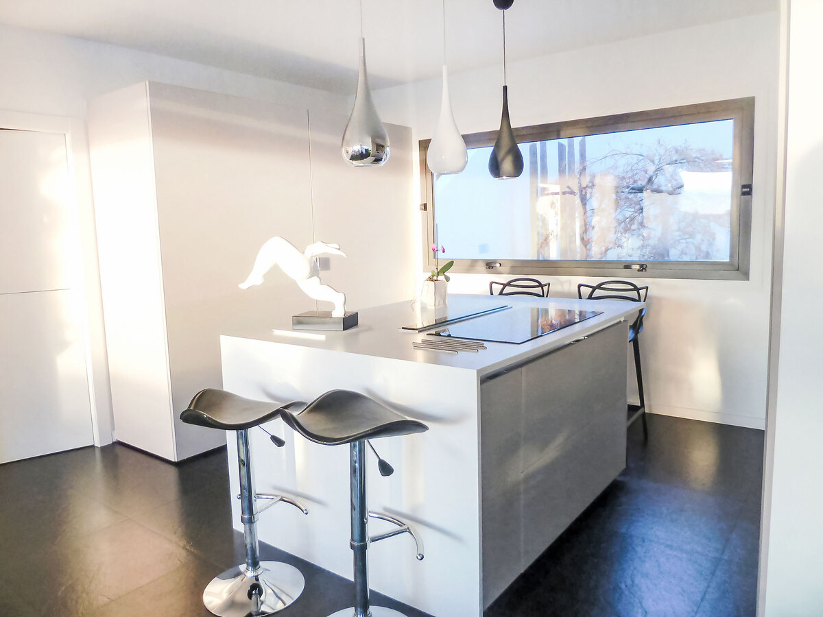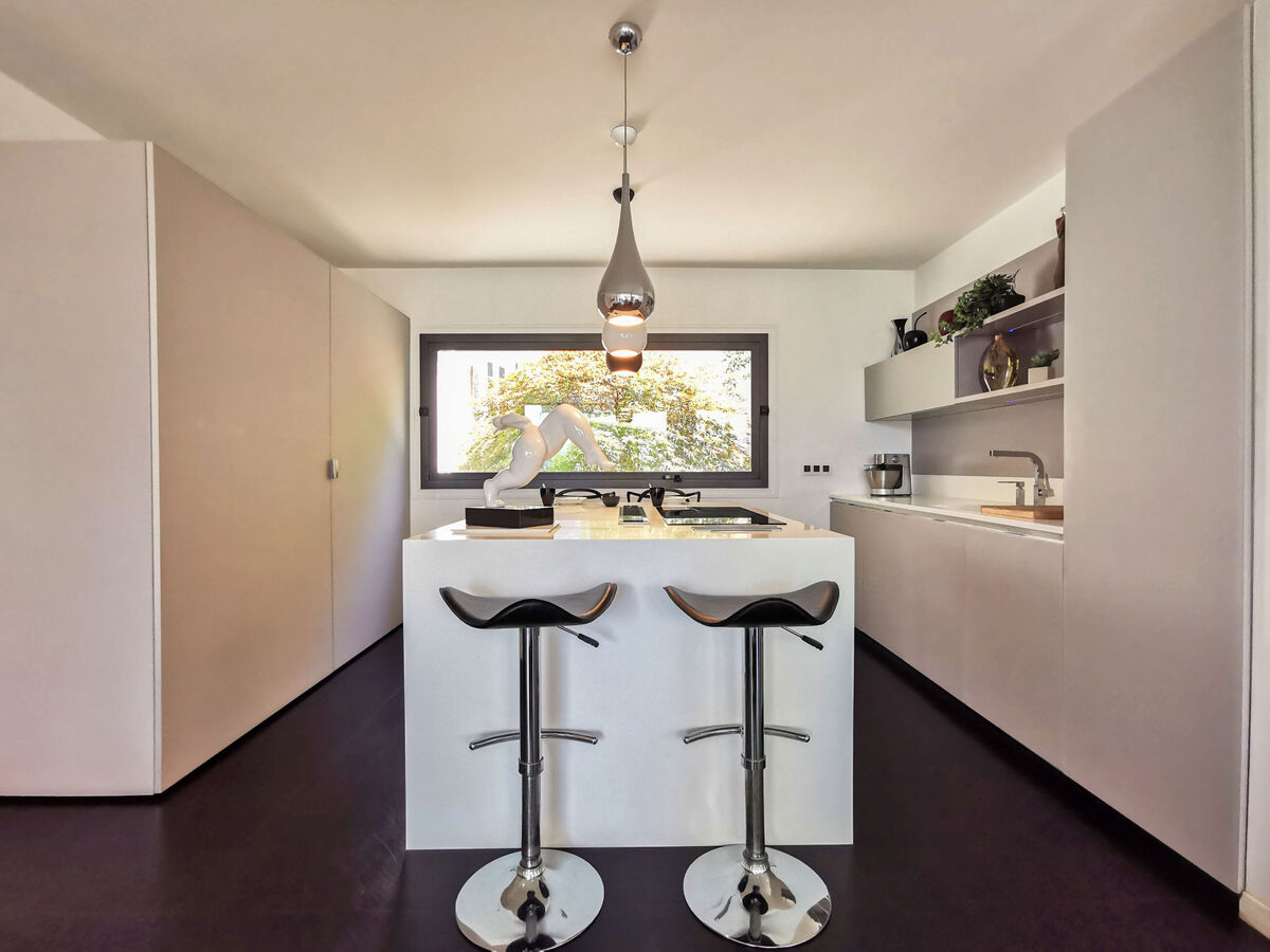 Cuisine ouverte (four, lave-vaisselle, 3 plaques à induction, grille-pain, bouilloire électrique, micro-ondes, cafetière électrique, Capsules pour machine à café (Nespresso) (NON INCLUSES), four à vapeur, ilot de cuisine).