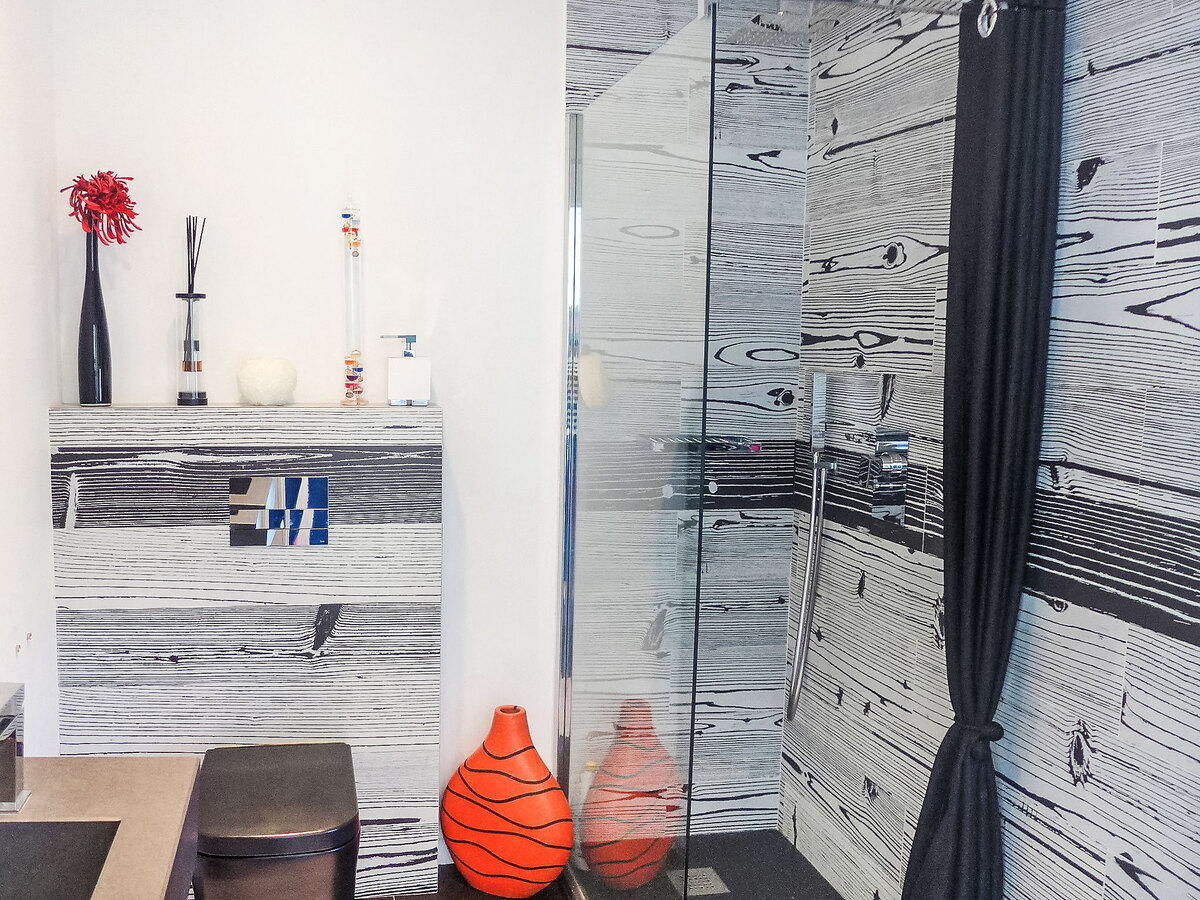 1 chambre avec 1 grand-lit (160 cm, longueur 200 cm), douche et TV (écran plat), air-conditionné.