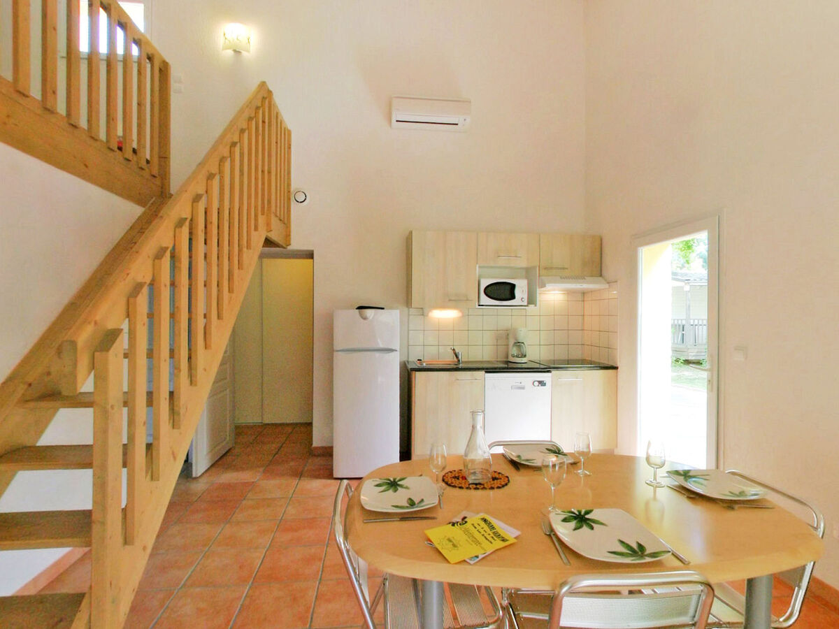 À l'étage supérieur: (escalier raide) galerie mansardée avec 2 lits (80 cm, longueur 190 cm).