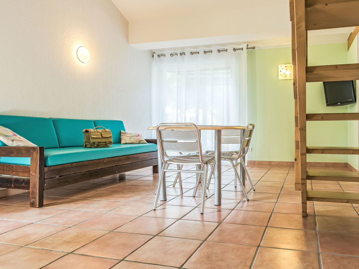 Aménagement fonctionnel: séjour/chambre à coucher avec 1 divan-lit double, table pour les repas et TV (satellite) (écran plat), air-conditionné.