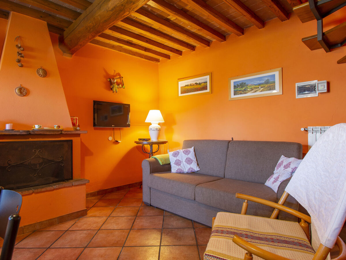 Aménagement rustique et plaisant: séjour/chambre à coucher avec 1 divan-lit double, cheminée, table pour les repas et TV (satellite).