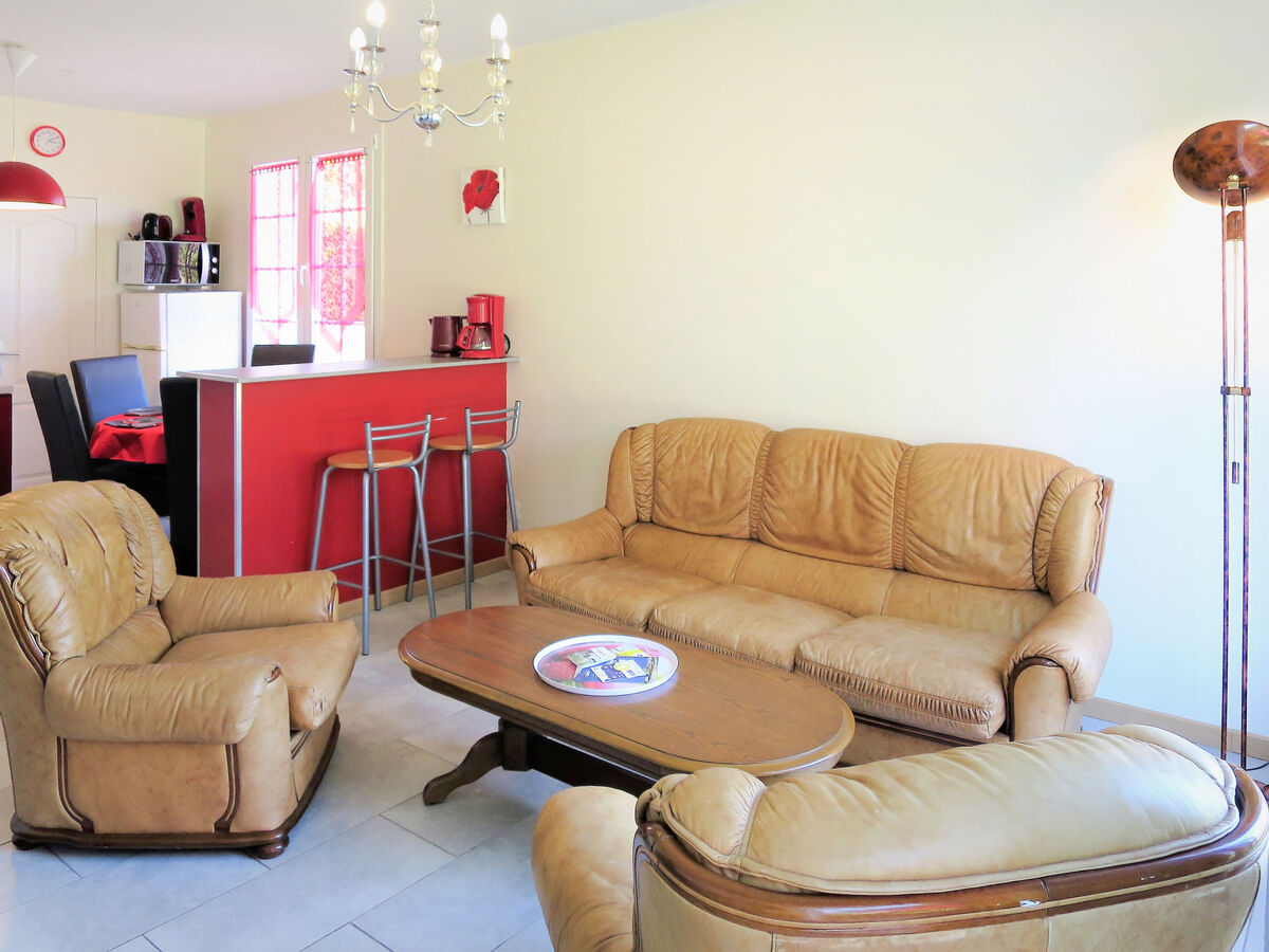 Aménagement fonctionnel et plaisant: séjour/salle à manger avec table pour les repas et TV (satellite) (écran plat), radio et lecteur CD.