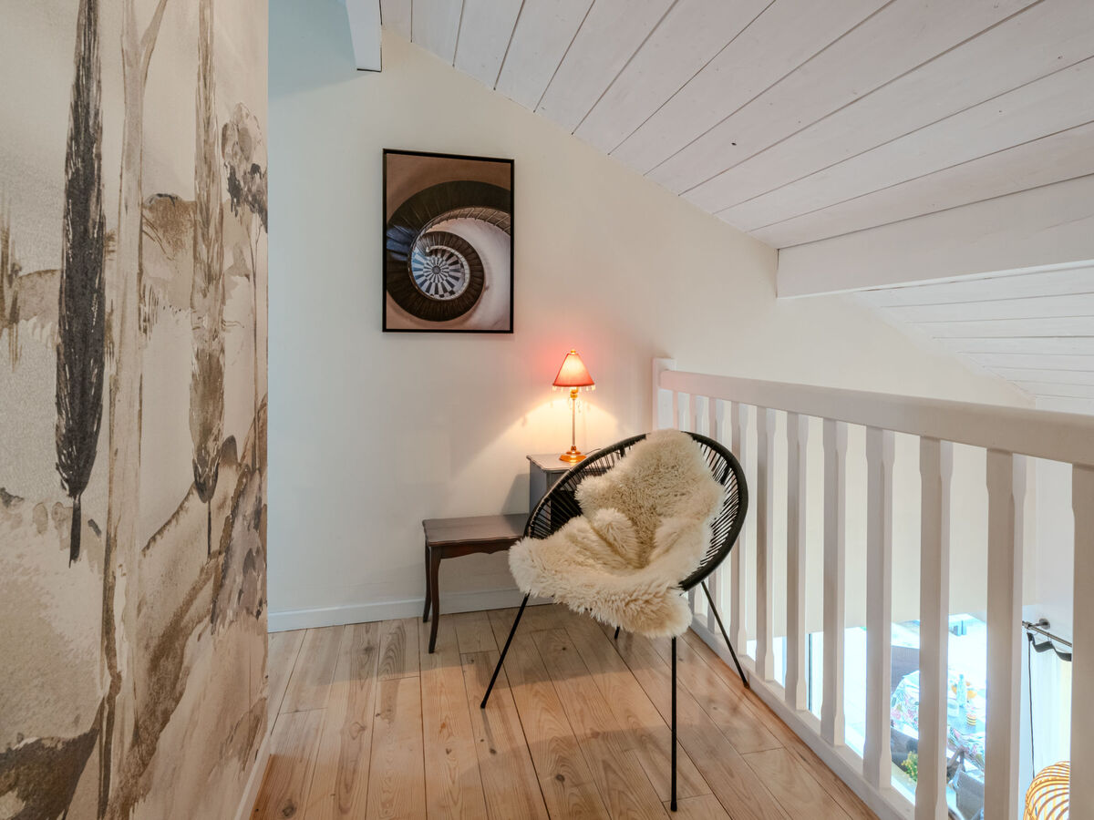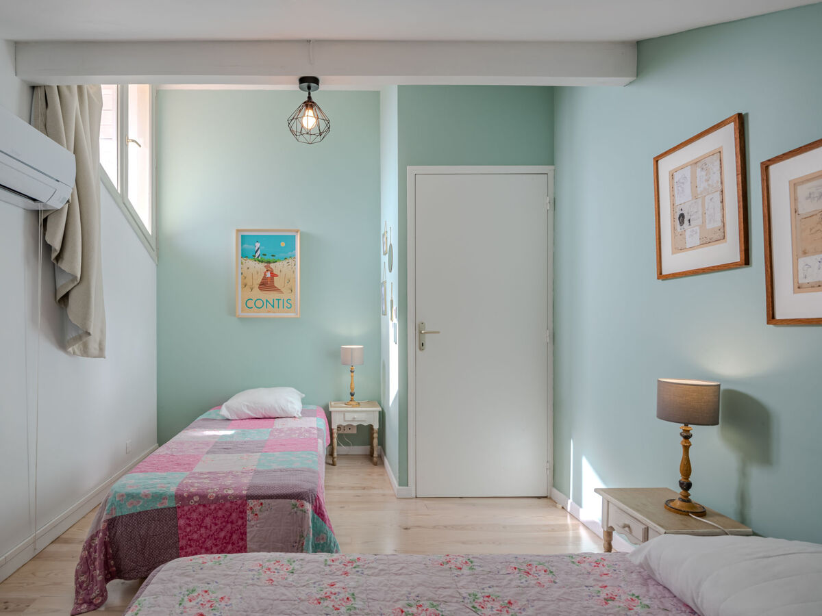 À l'étage supérieur: 2 chambres, mansardées, chaque chambre avec: 2 lits (90 cm, longueur 190 cm), air-conditionné.