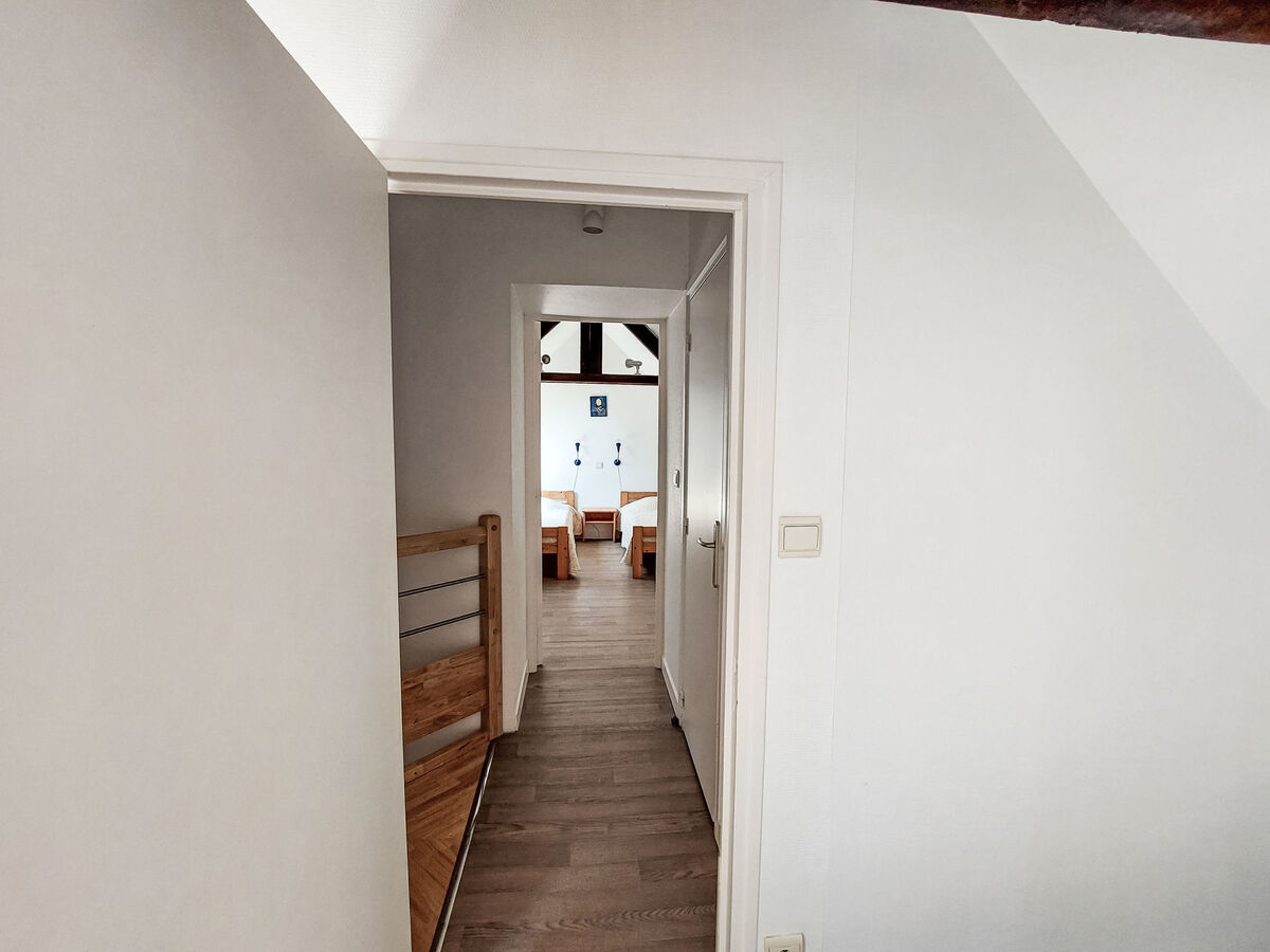 2ème étage: (escalier en colimaçon) 2 chambres, mansardées, chaque chambre avec: 2 lits (90 cm, longueur 190 cm).