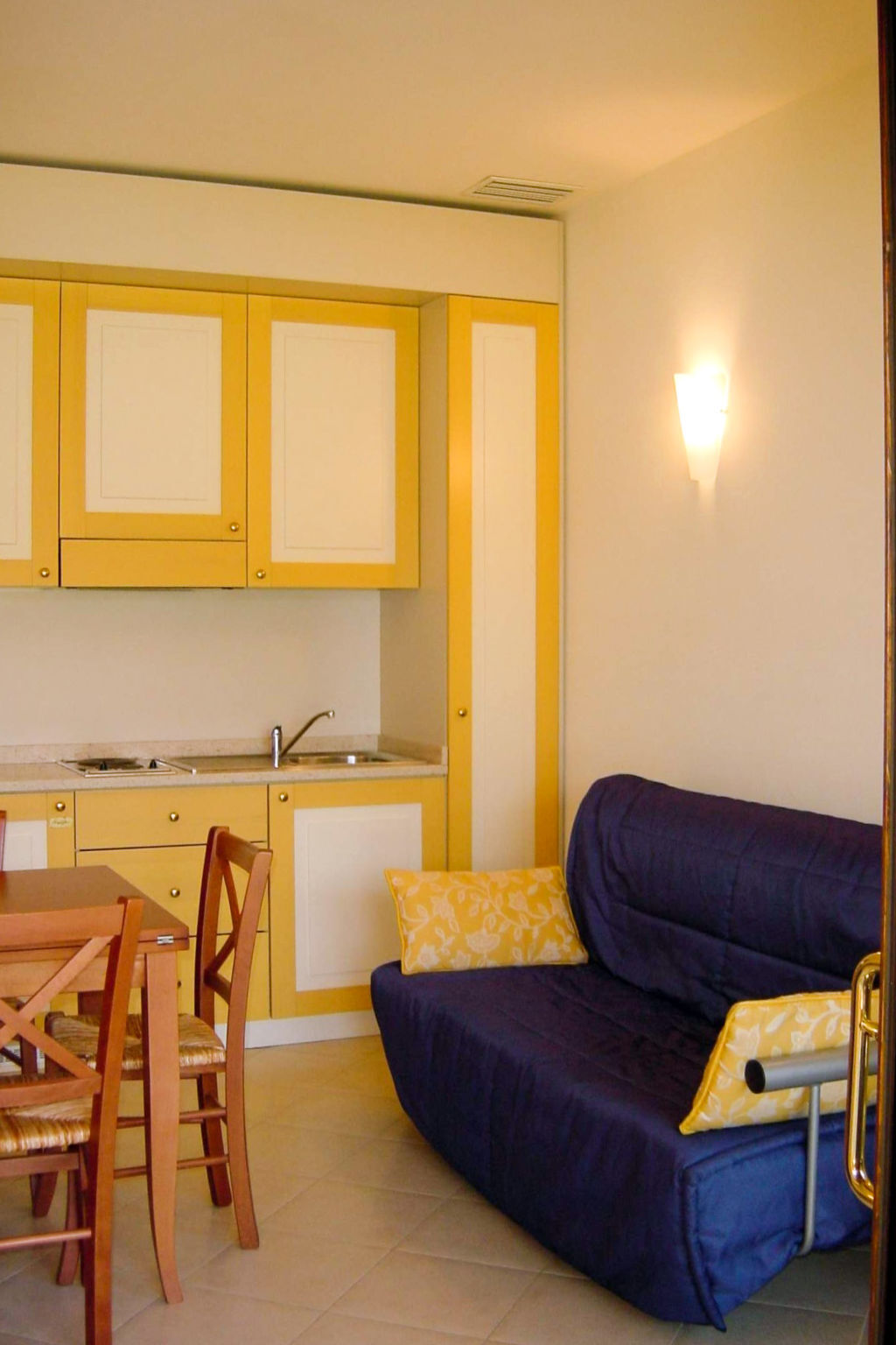 Aménagement confortable et agréable: séjour/chambre à coucher avec 1 divan-lit double, table pour les repas et TV (satellite).
