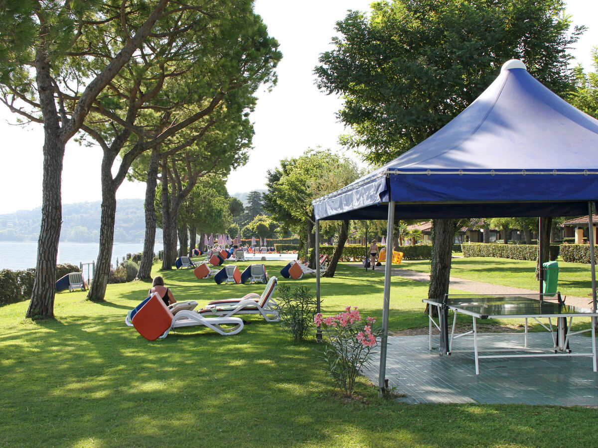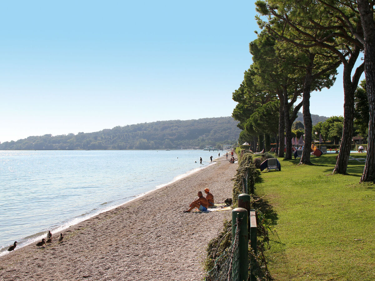 À 4 km du centre de Desenzano del Garda en-dehors de la localité Padenghe sul Garda, à 50 m du lac, accès direct à la plage.