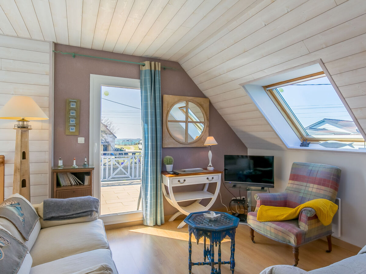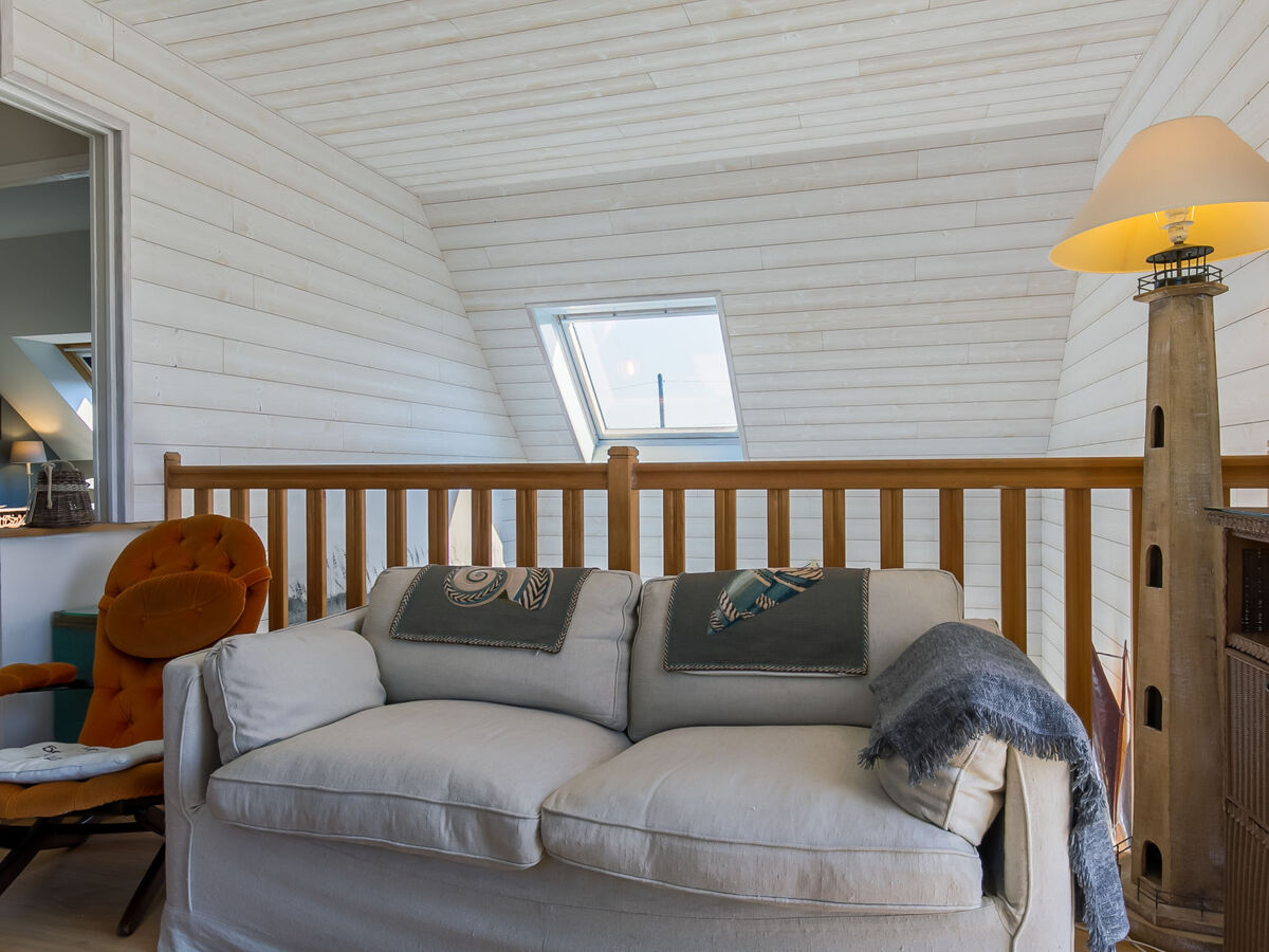 À l'étage supérieur: séjour mansardé, ouvert avec TV (satellite), radio, lecteur CD et DVD.