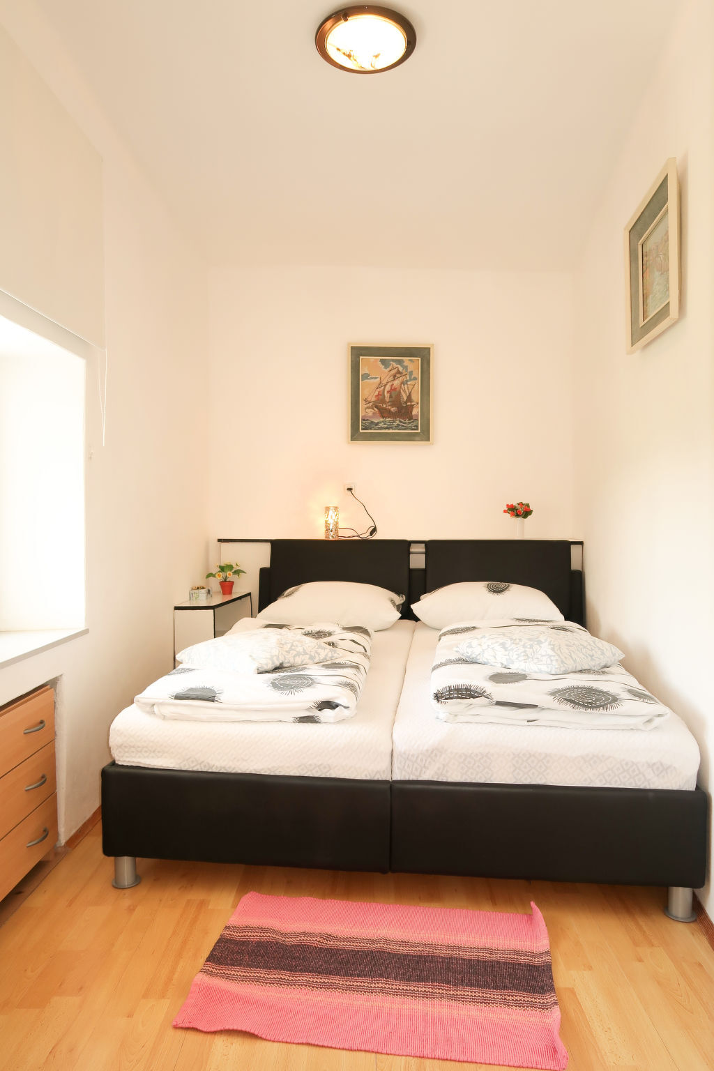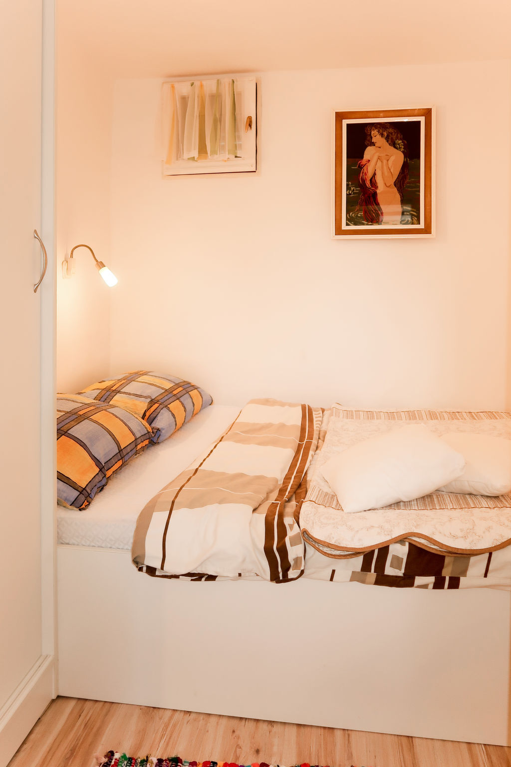 1 chambre avec 1 grand-lit (160 cm, longueur 200 cm).