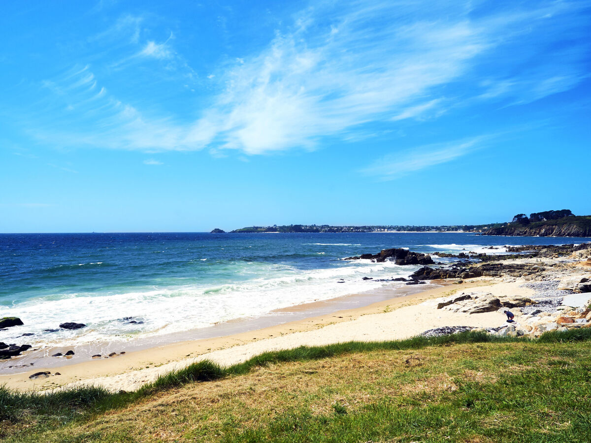 Dans le hameau de Portez, à 4 km du centre de Locmaria-Plouzané, à 6 km du centre de Plouzané, à 16 km du centre de Brest, juste au bord de la mer, juste au bord de la plage, accès direct à la plage.