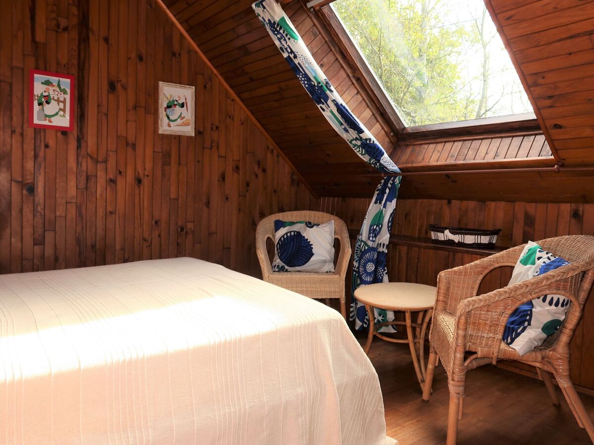 1 chambre, mansardée avec 1 grand-lit (160 cm, longueur 190 cm).