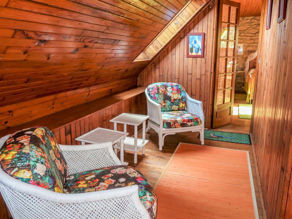 À l'étage supérieur: (escalier en colimaçon) 2 chambres, mansardées, chaque chambre avec: 1 grand-lit (140 cm, longueur 190 cm).