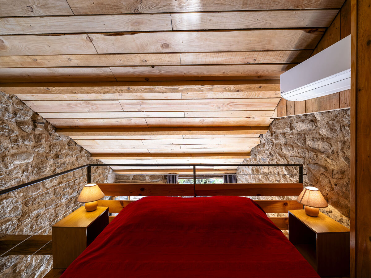 À l'étage supérieur: galerie ouverte avec 1 lit (90 cm, longueur 190 cm), 1 grand-lit (140 cm, longueur 190 cm), air-conditionné.