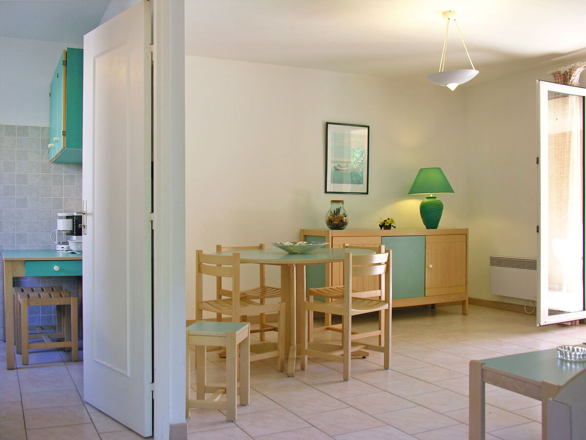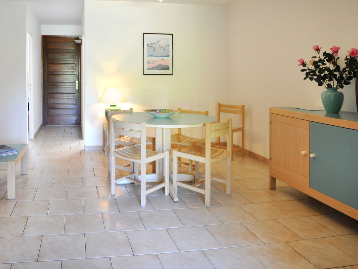 Aménagement fonctionnel et plaisant: séjour/chambre à coucher avec 1 divan-lit double, table pour les repas et TV (satellite).
